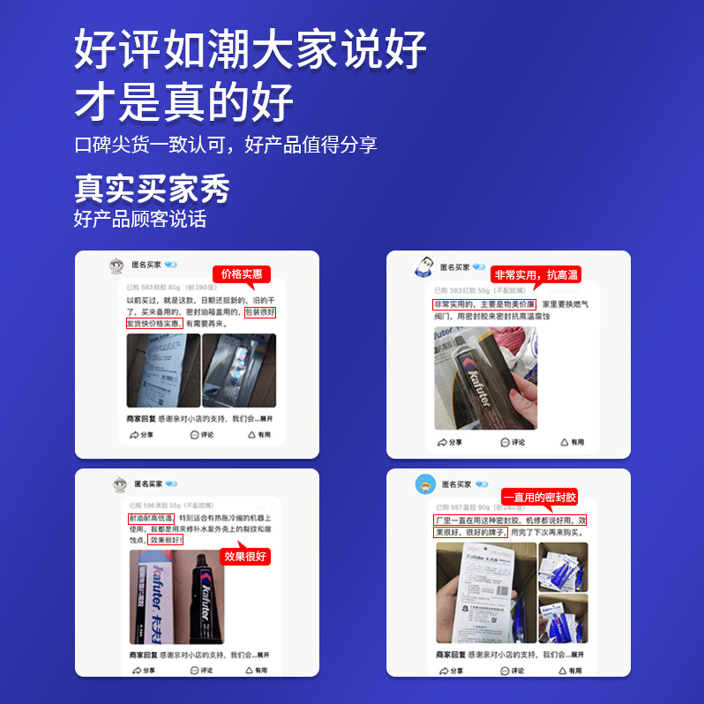 📚 卡夫特汽车发动机密封胶汽修耐高温电机油底壳摩托机械水泵强力防水专用密封胶586免垫片黑胶588硅酮密封红胶