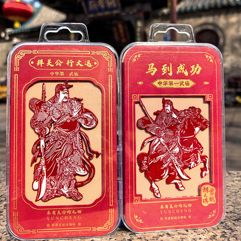 📚 山西文创礼物关帝庙关公剪纸冰箱贴钥匙扣手机贴金属贴武财神关羽
