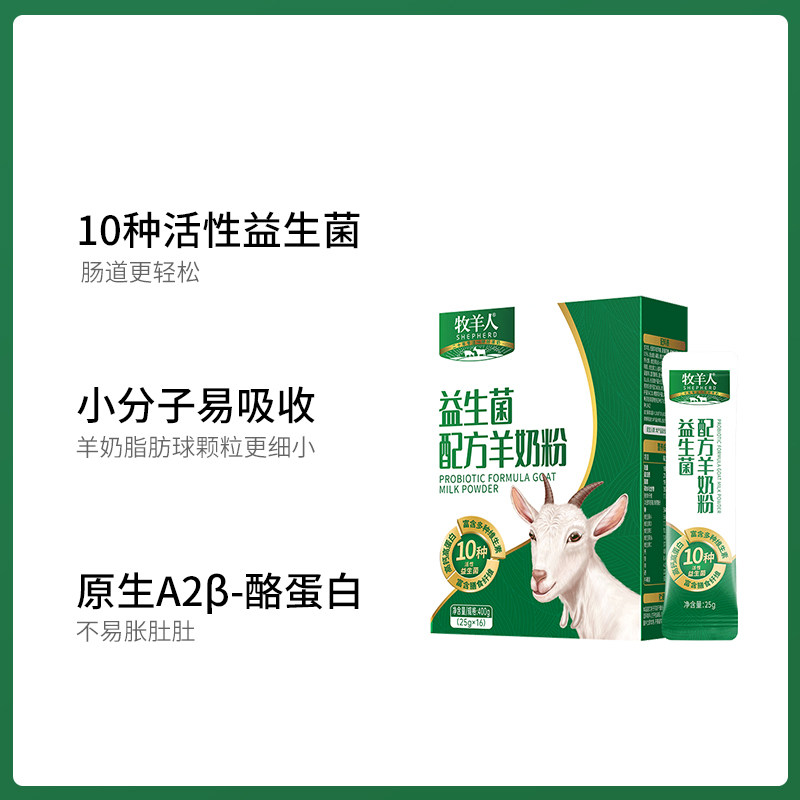 📚 牧羊人益生菌配方羊奶粉400g高钙高蛋白含多种维生素膳食纤维