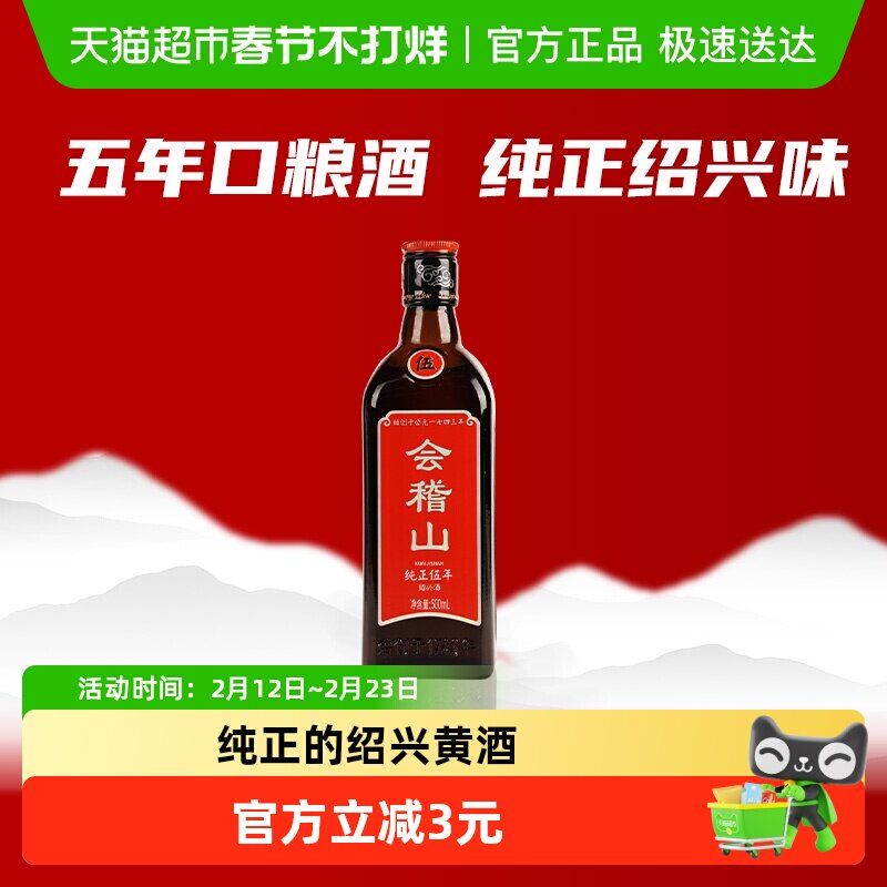 📚 会稽山绍兴黄酒纯正五年花雕加饭酒陈年糯米花雕酒500ml*1瓶