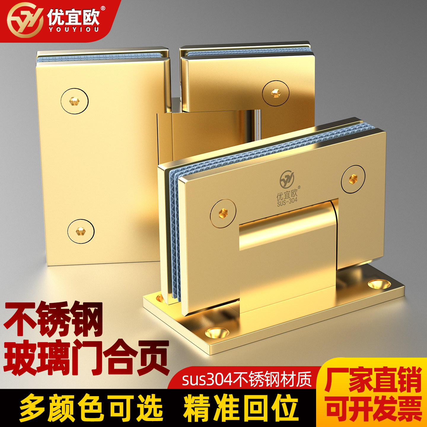 📚 玻璃夹紧固定器不锈钢钛金亮光玻璃门夹合页配件淋浴房铰链浴室夹
