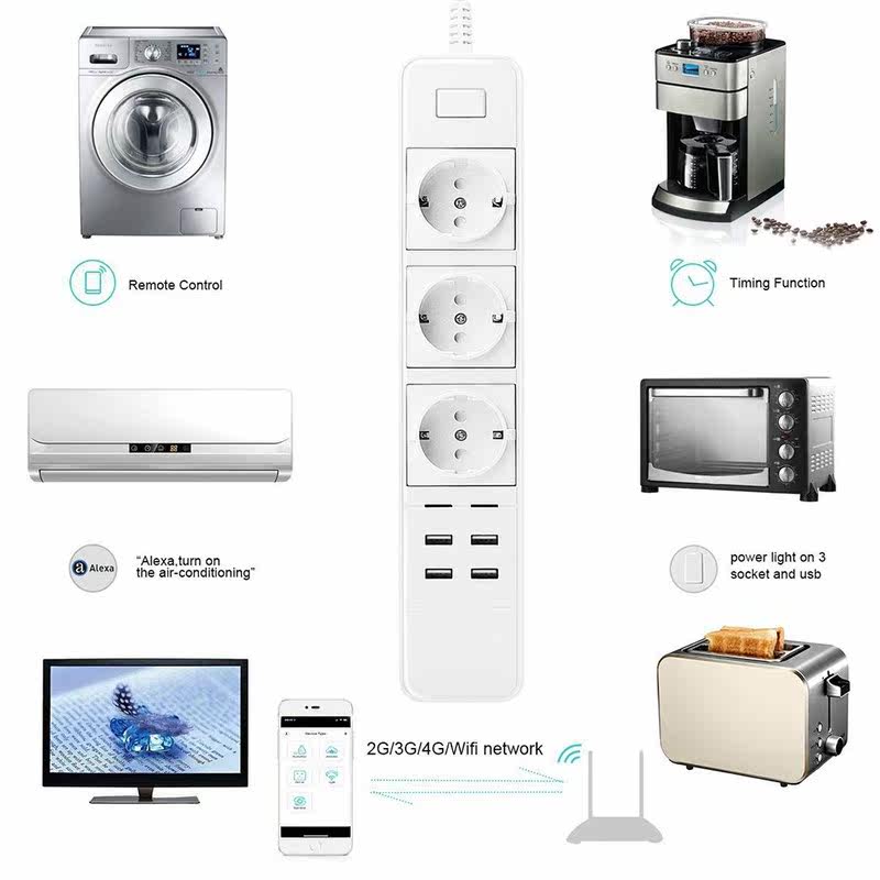 📚 Multiple Power Socket Smart Wifi Power Strip Wireless Remot