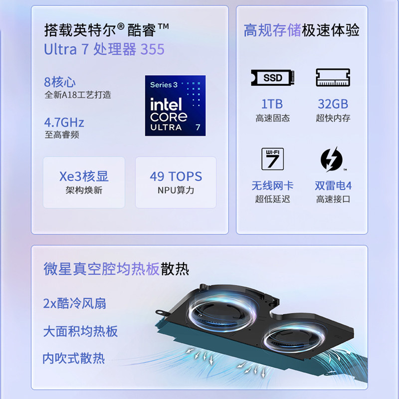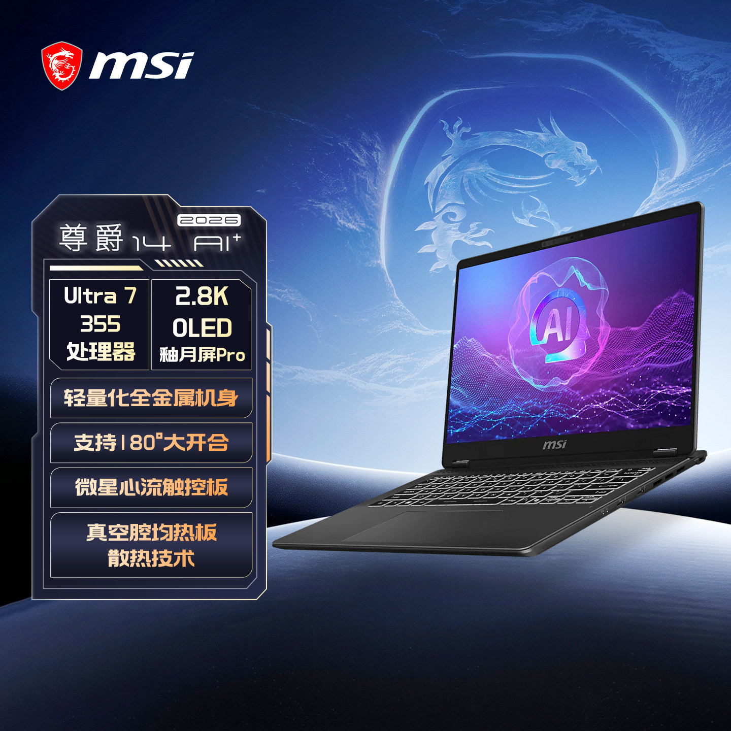 📚 【新品首发】MSI微星尊爵14 AI+笔记本电脑酷睿Ultra 7 355处理器14英寸2.8K OLED商用办公便携轻薄本