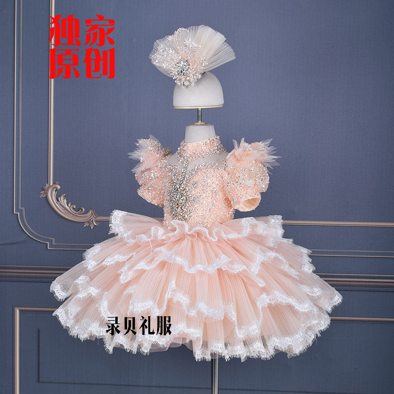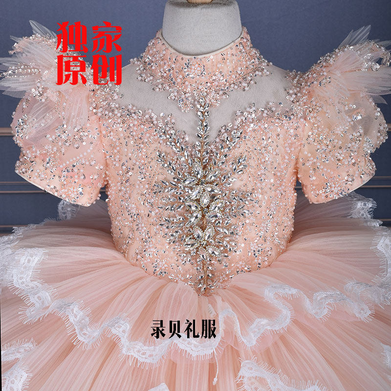 📚 儿童高端走秀主持人演出服女童公主裙小女孩高端粉色蓬裙出租