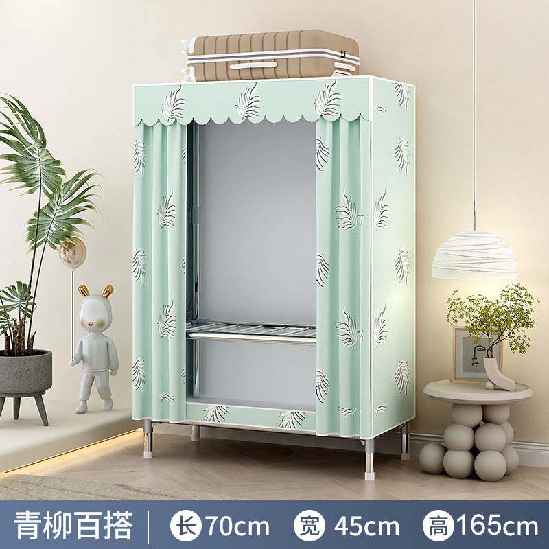 📚 简易家用卧室组装布衣柜出租房收纳铝合金架加粗厚落地衣橱架子厂