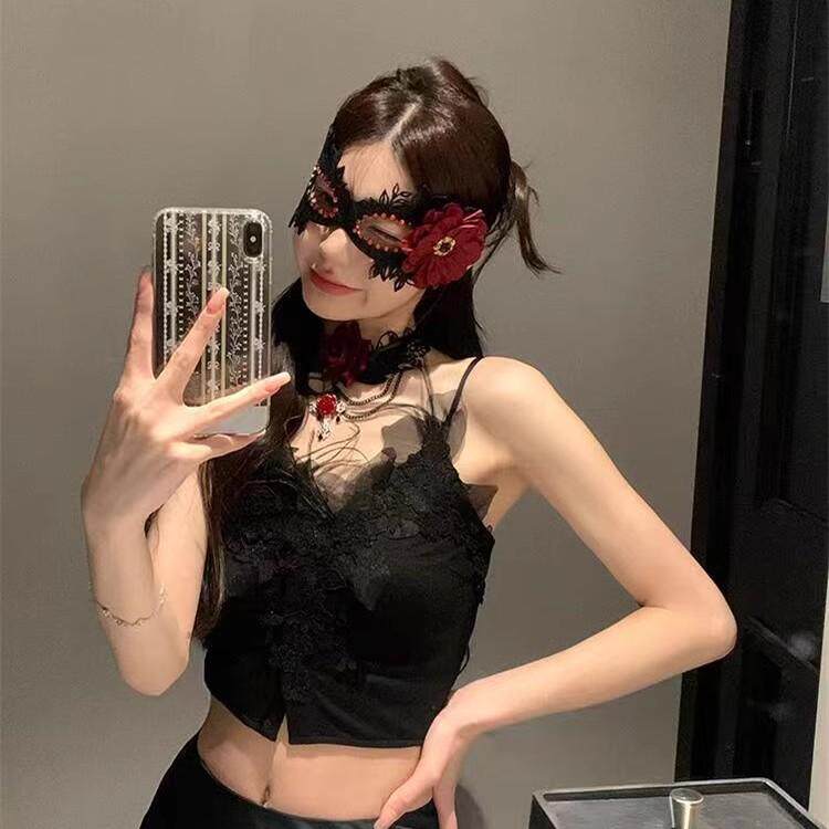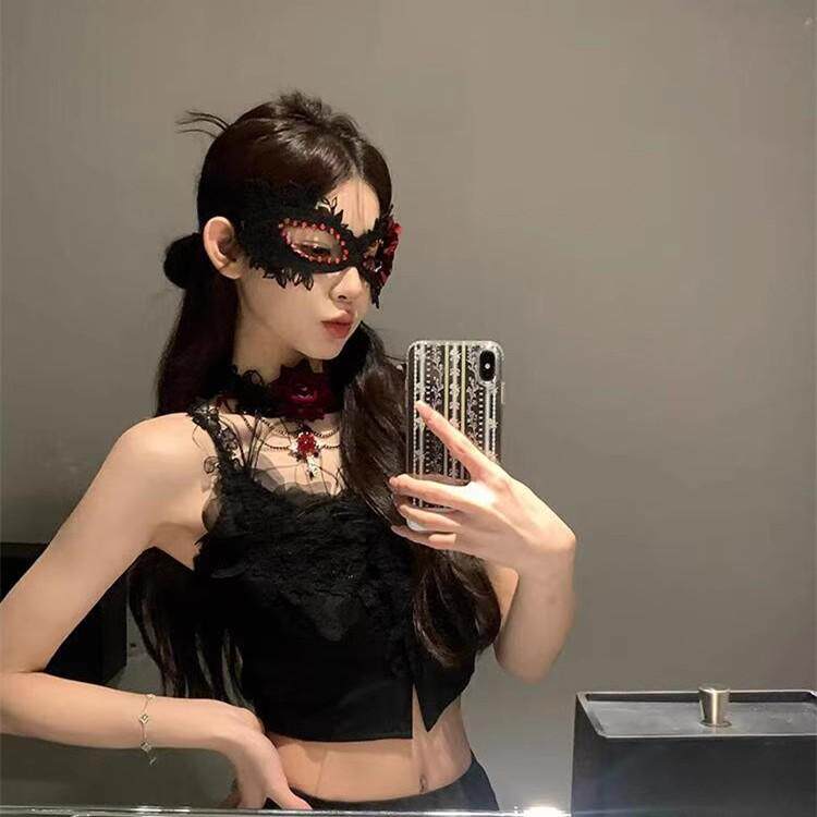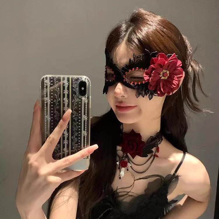📚 禁欲系蕾丝玫瑰花面罩cos装扮道具半遮脸蒙面黑色眼罩性感面纱女