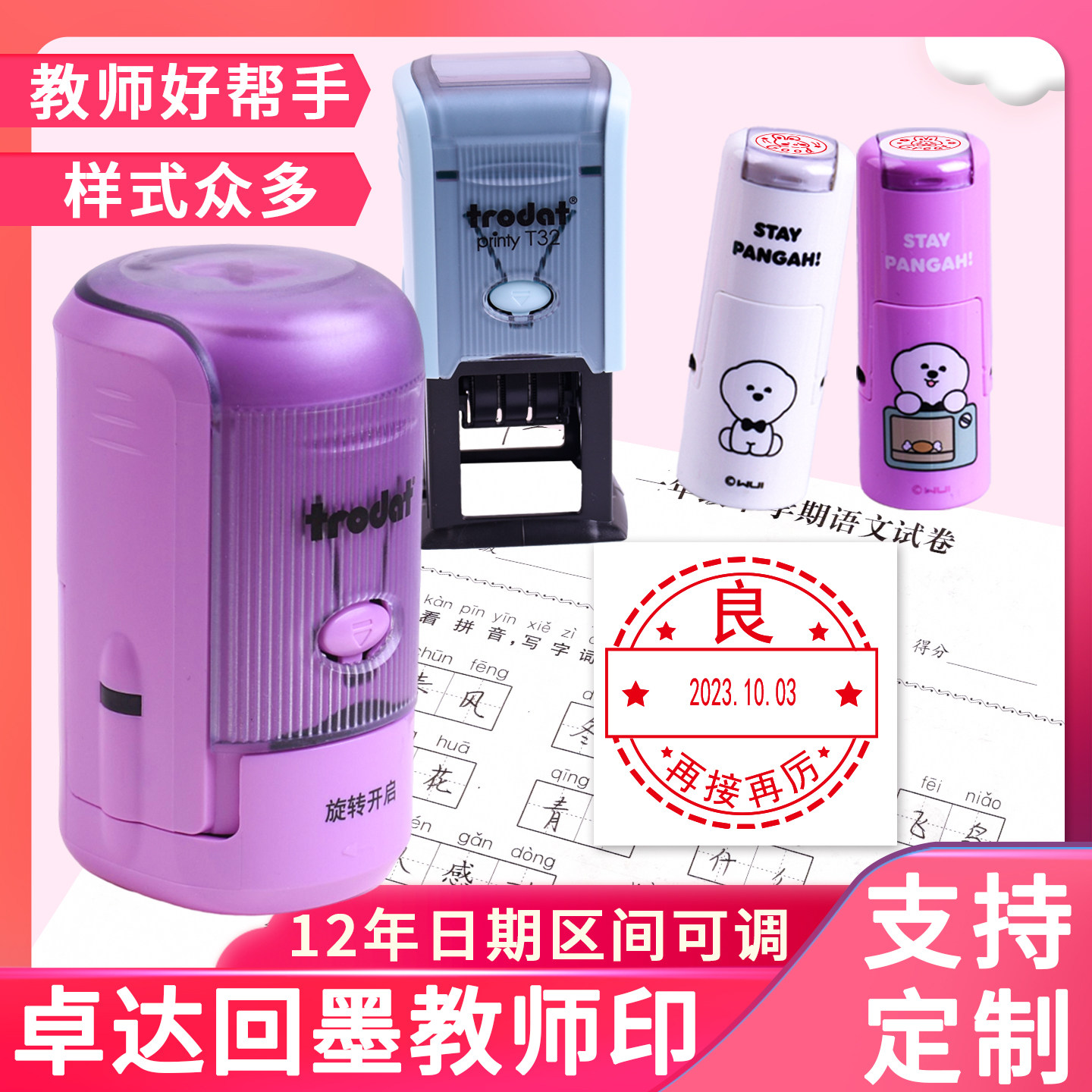 📚 卓达教师用评语印章12年可调年月日老师奖惩鼓励批改作业趣味教学小帮手表扬学生阅查good回墨章