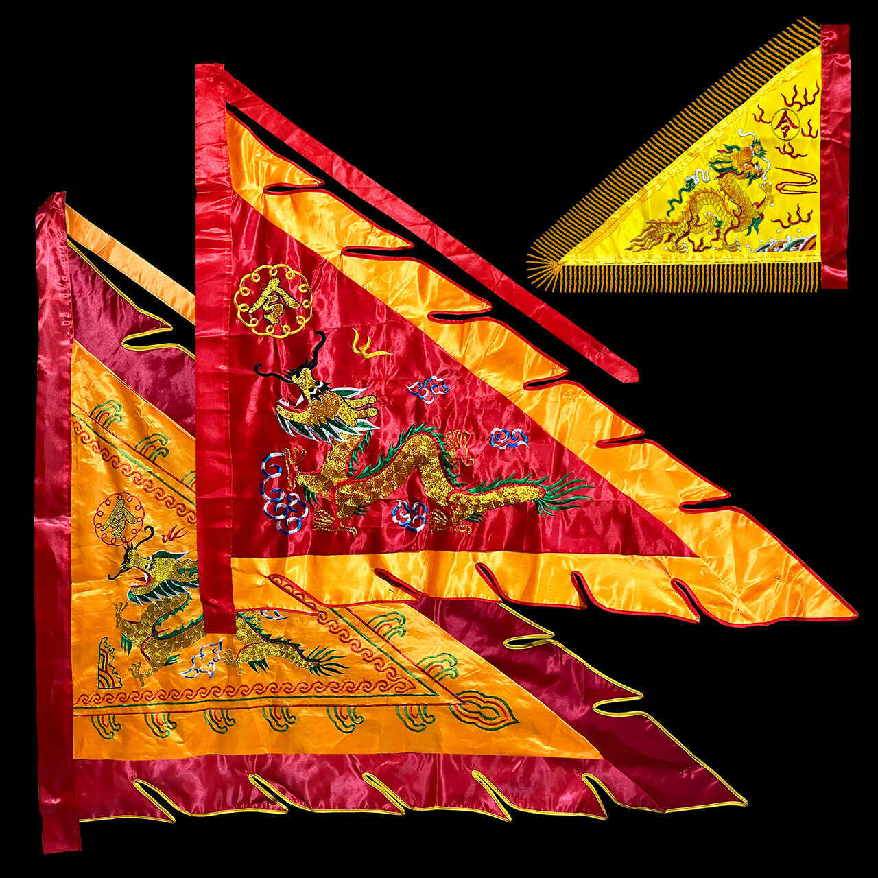 📚 三角龙旗手工刺绣龙凤大旗子大红色锦旗旗仿帅旗令旗金线绣1.8米
