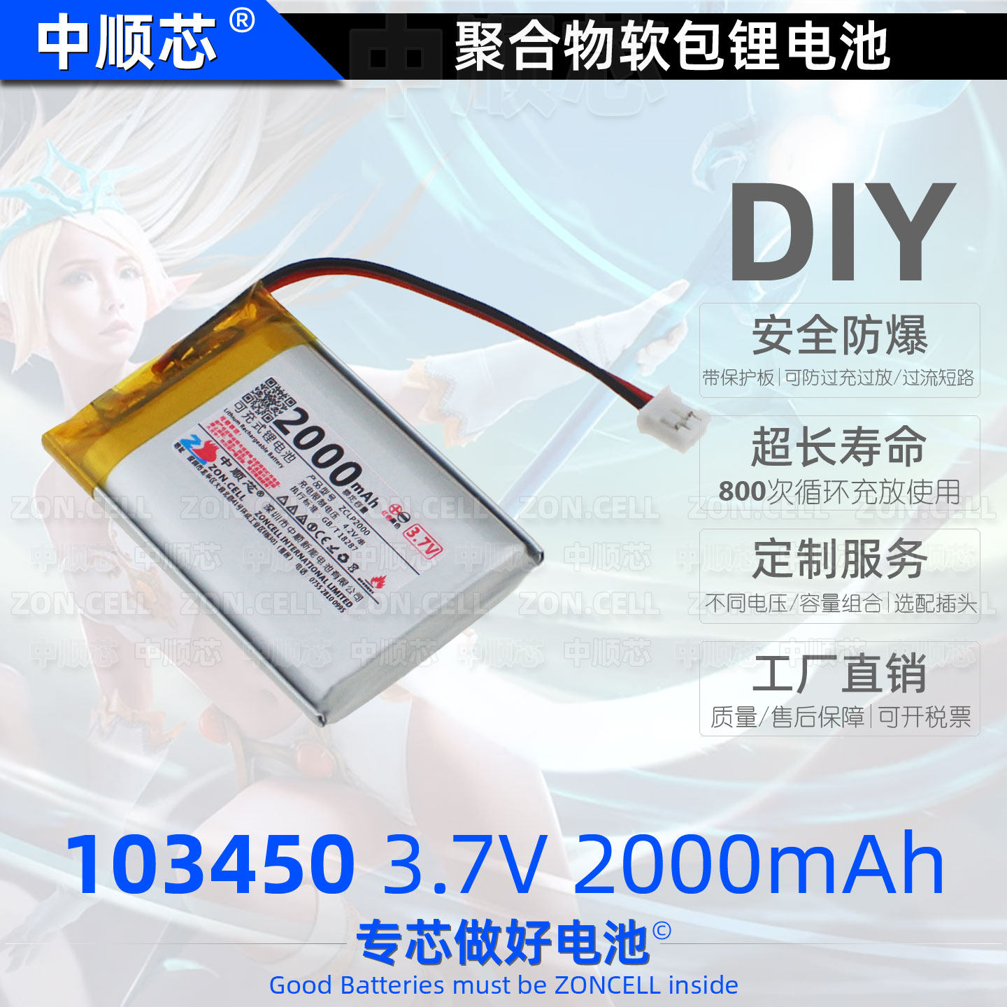 📚 中顺芯103450电话学习故事机儿童玩具PS游戏手柄聚合物锂电池3.7V