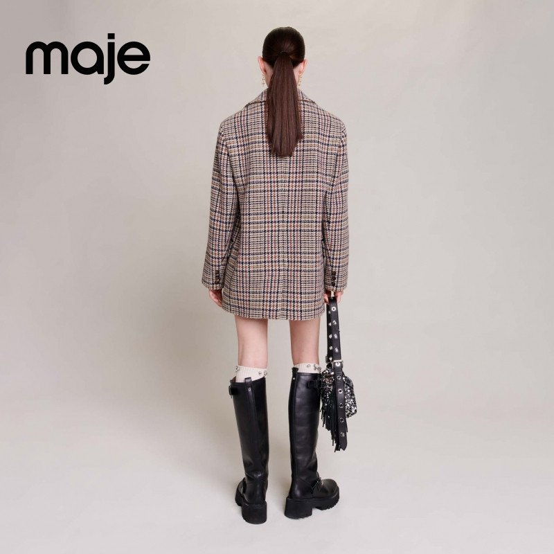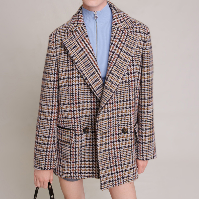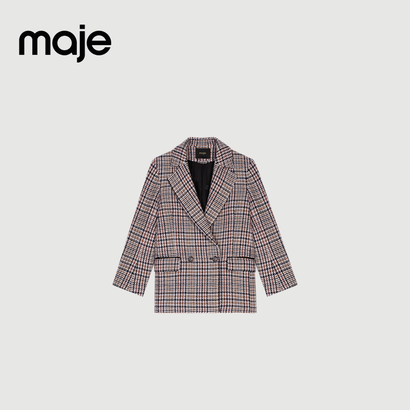 📚 Maje Outlets秋冬女装时尚休闲羊毛混纺米黄色阔版毛呢西装外套