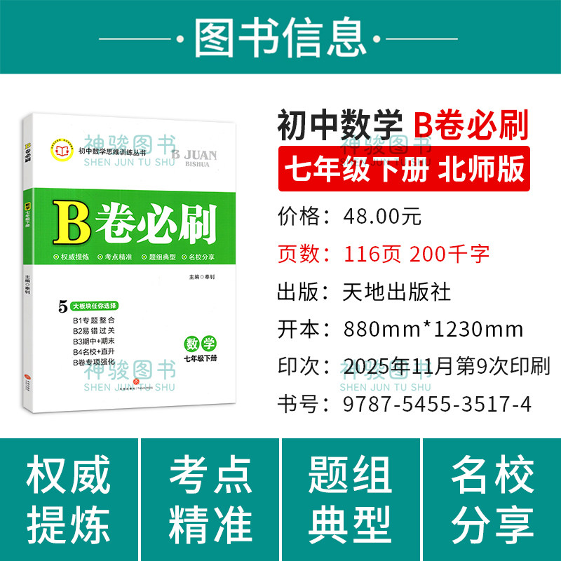 📚 2026新b卷必刷七下数学北师大版B卷必刷七年级下册初中思维训练初一数学必刷题b卷狂练7年级数学名校题库期中期末试卷天府数学前沿