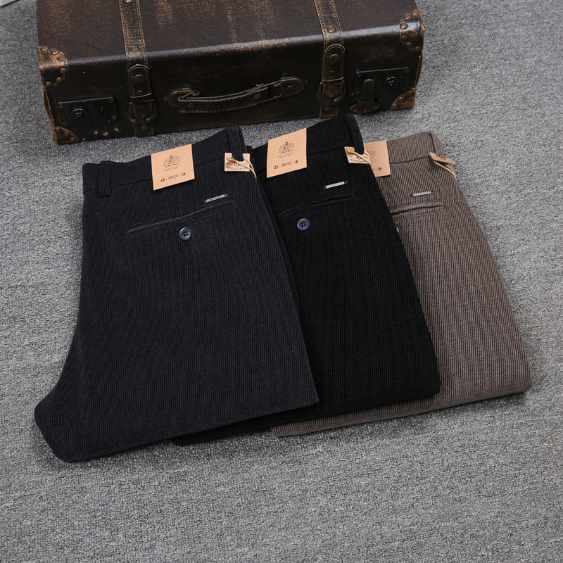 📚 客供灯芯绒秋冬条绒裤厚款弹力免烫直筒灯草绒高端商务男裤潮黑色