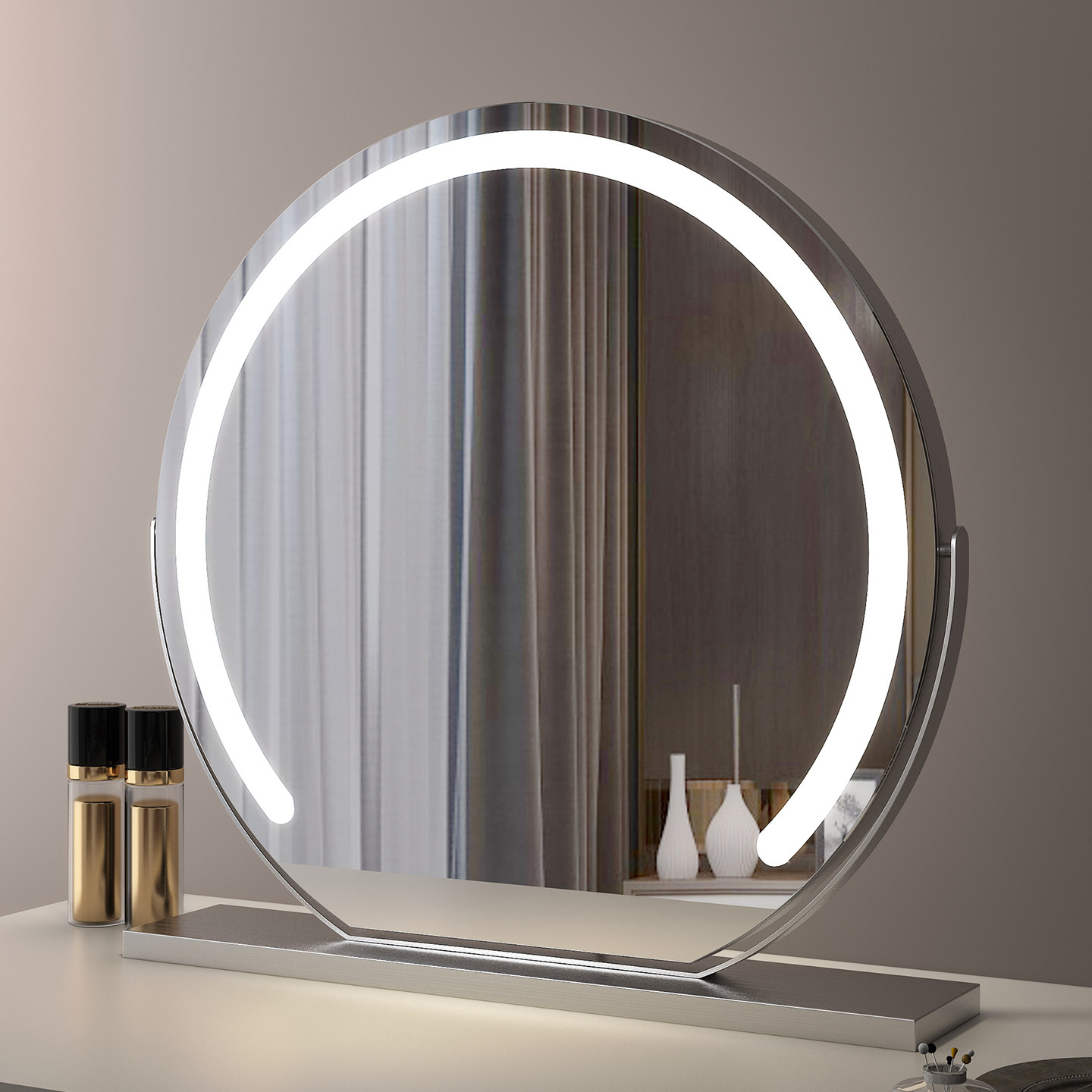 📚 高清led化妆镜子带灯梳妆镜台式桌面智能家用简约主卧室网红大号