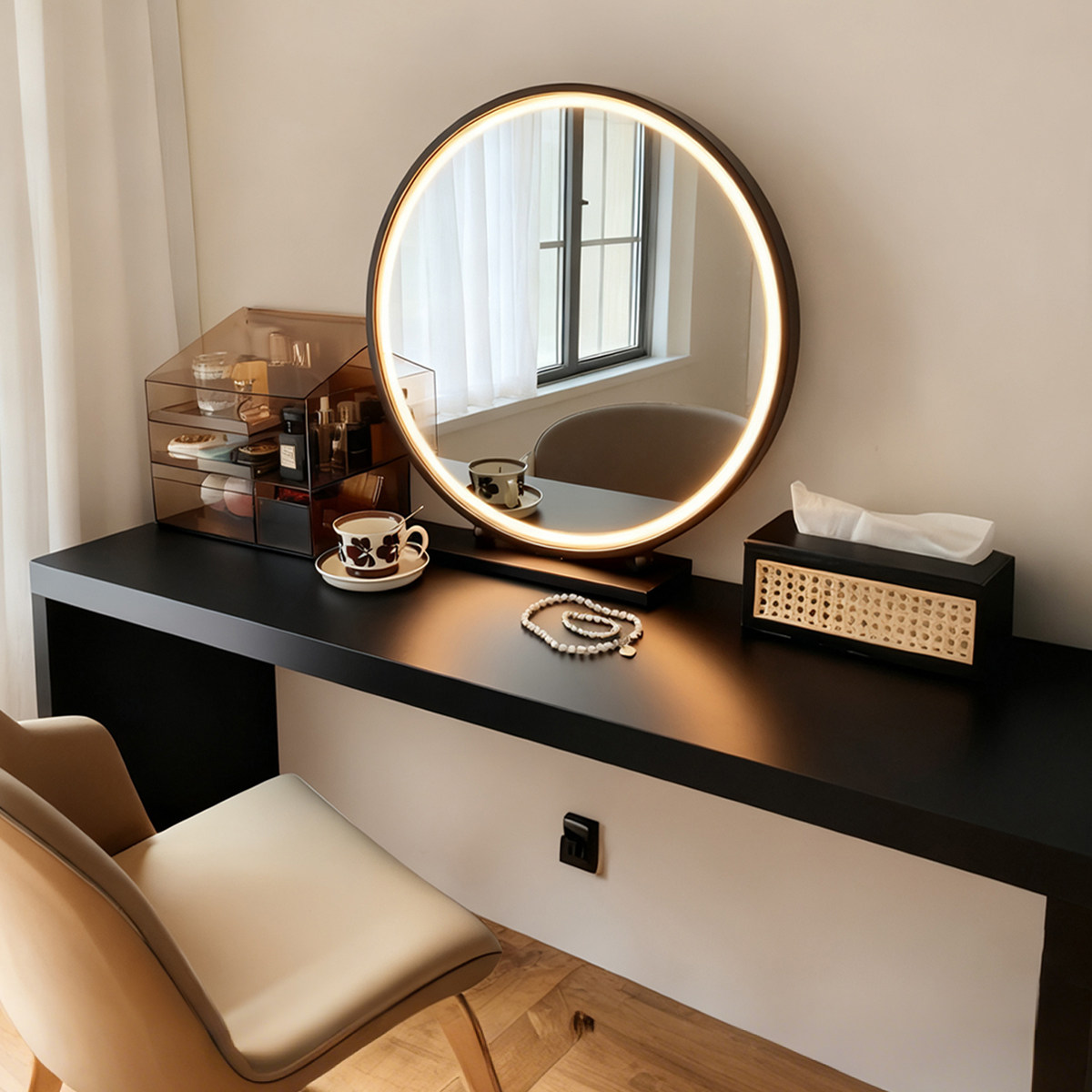 💥"轻奢升级!梦幻卧室神器——LED带灯圆形智能梳妆台"