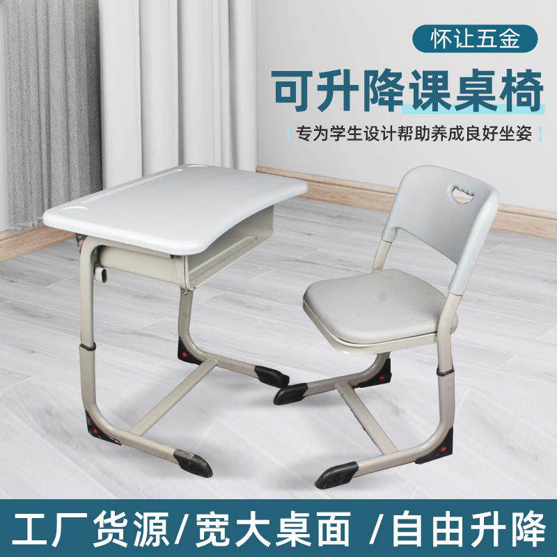 📚 学校教室课桌椅补习班桌子椅子套装可升降单人儿童书桌学生课桌椅