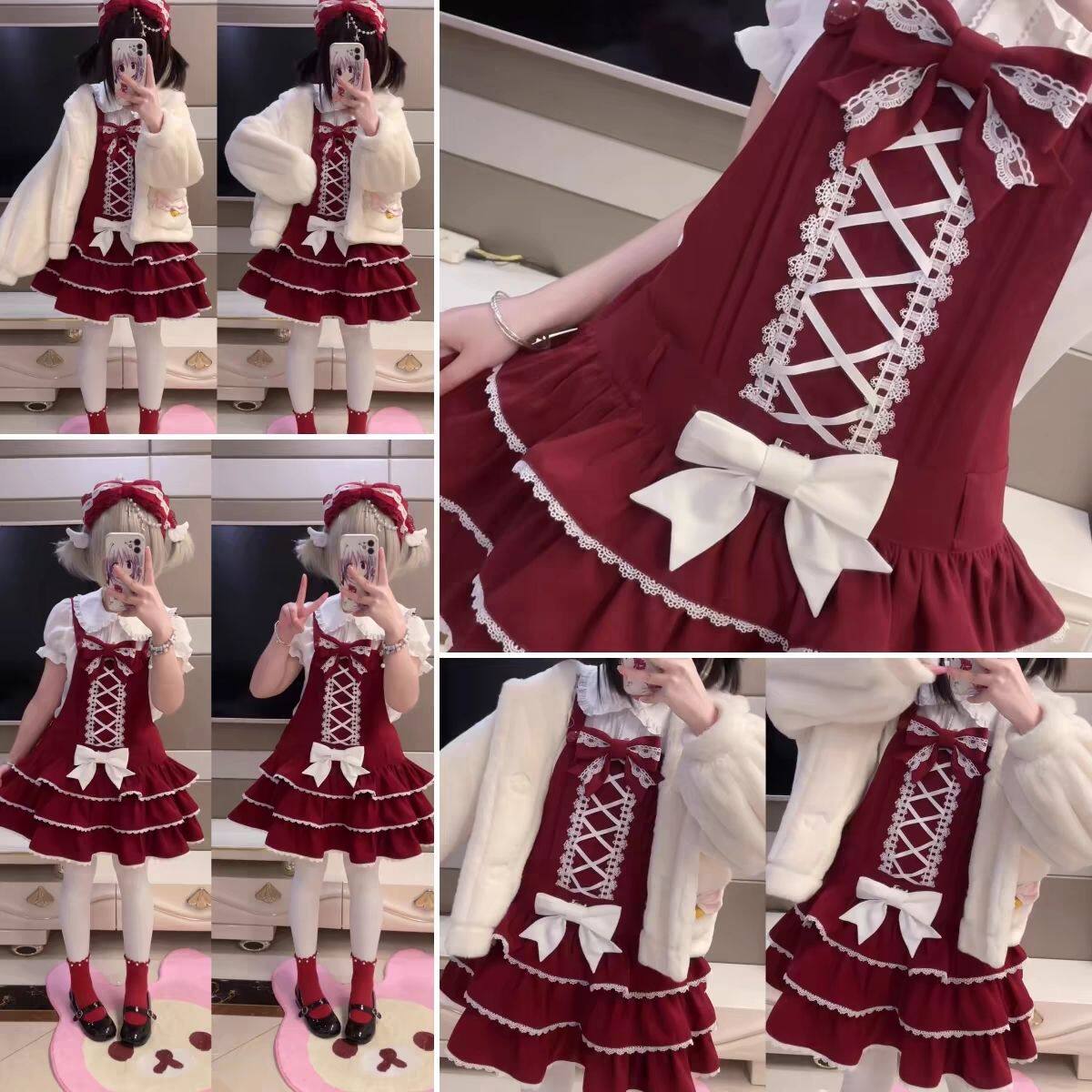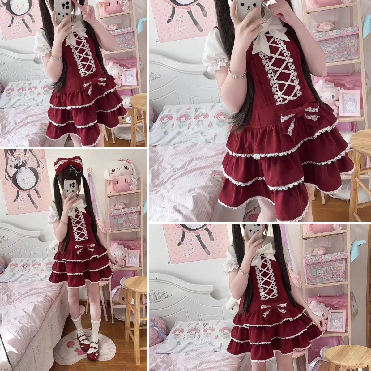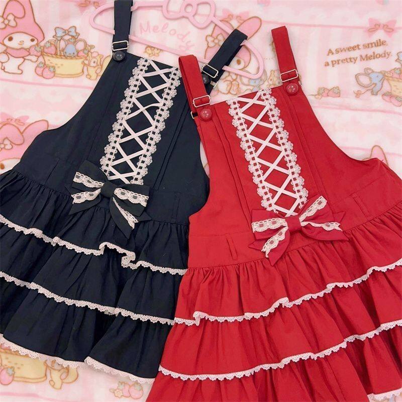 📚 熊之原创lolita古早昭和蛋糕三层裙摆背带裙套装公主风清新甜美