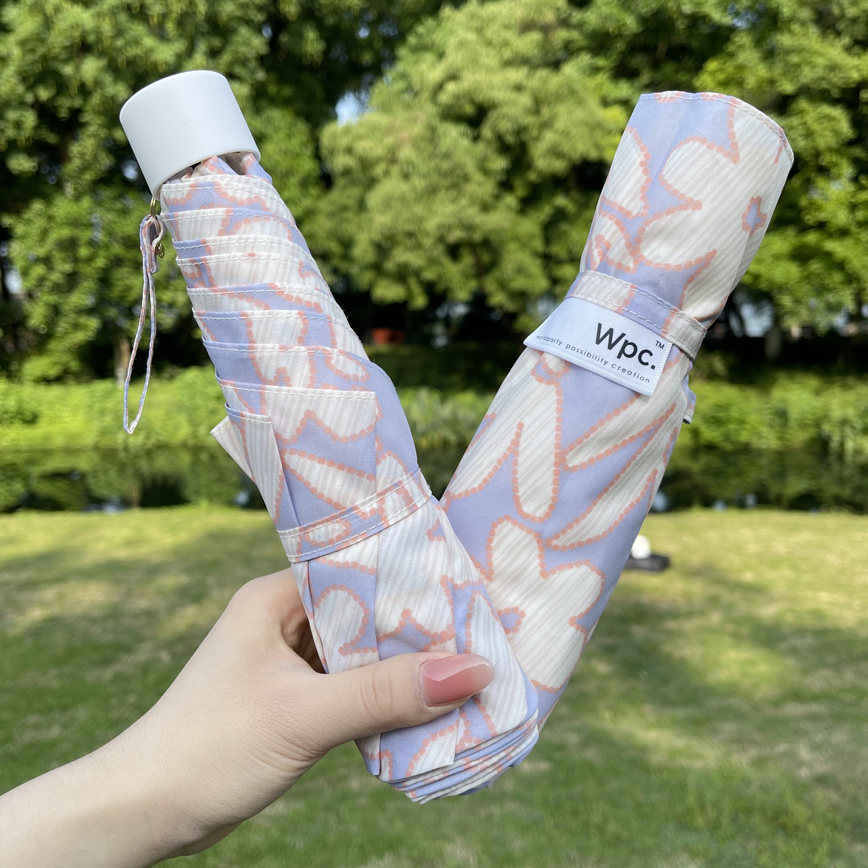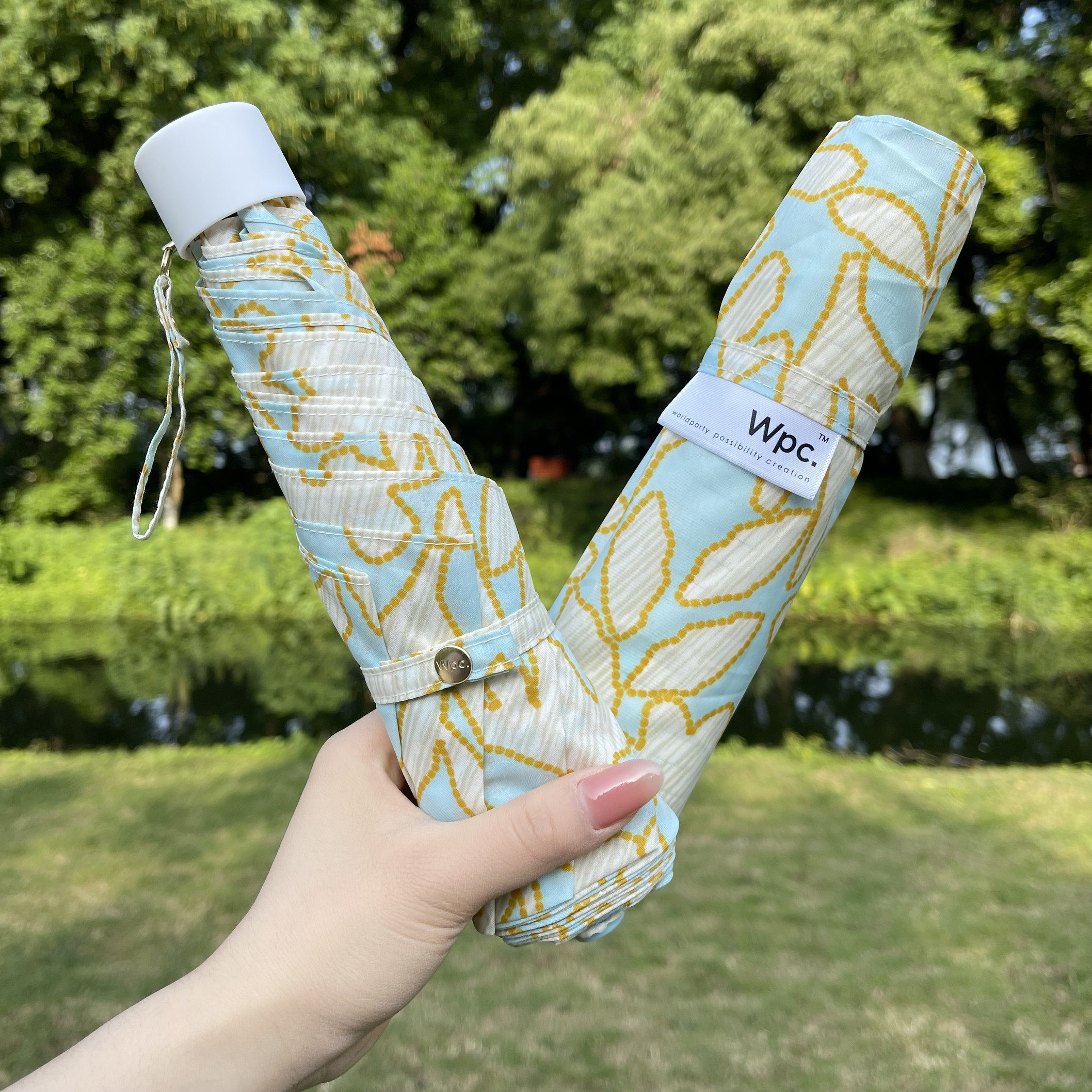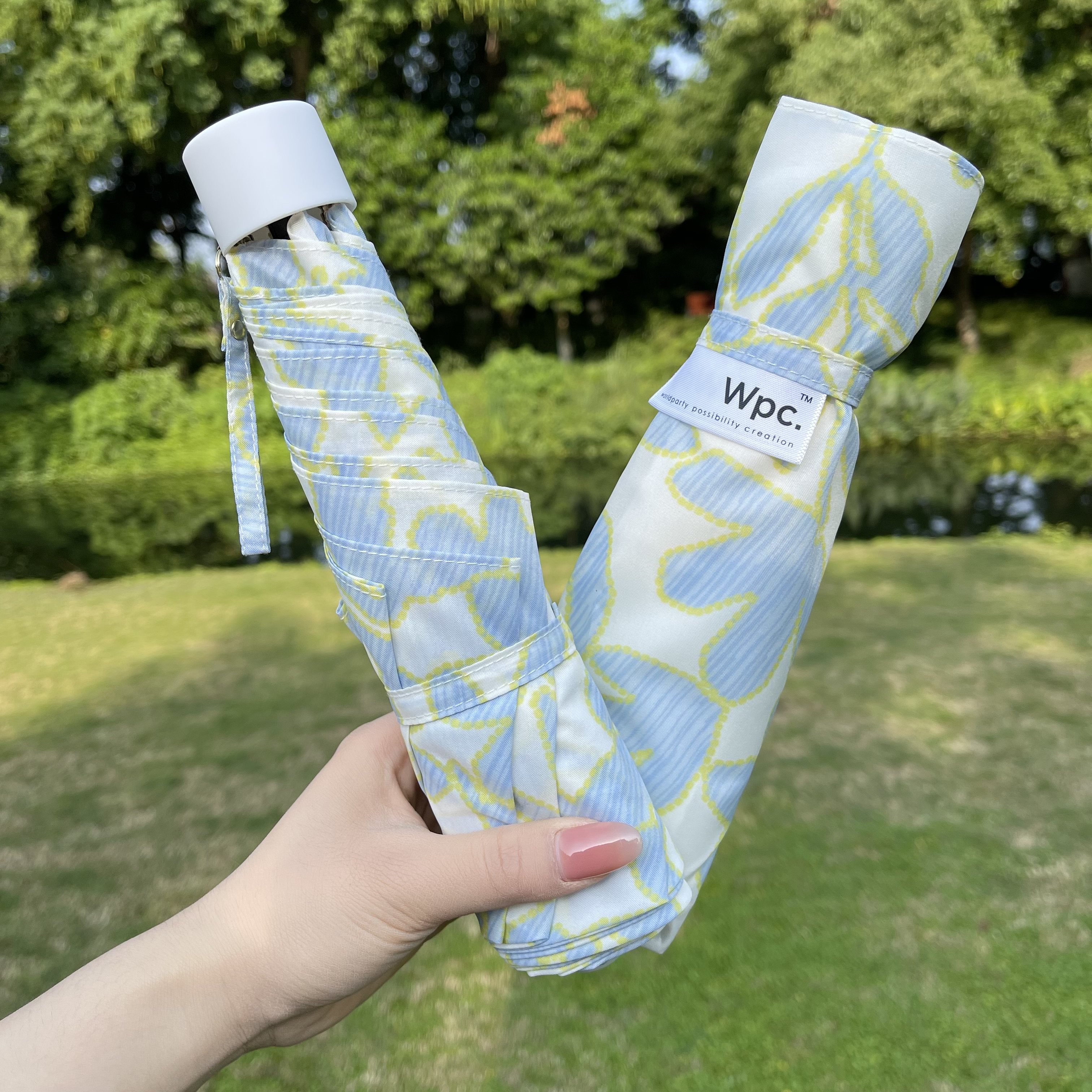 📚 日本Wpc.刺绣植物三折晴雨伞迷你木塑防紫外线便携超轻遮阳太阳伞