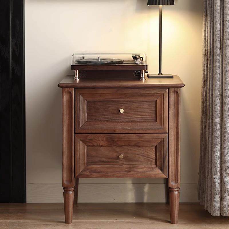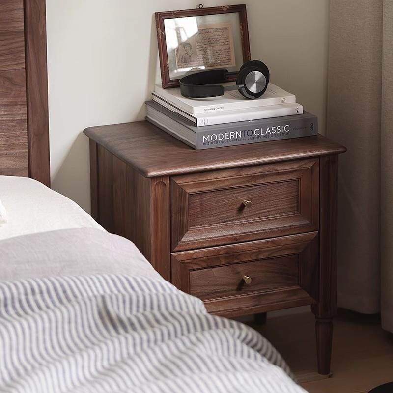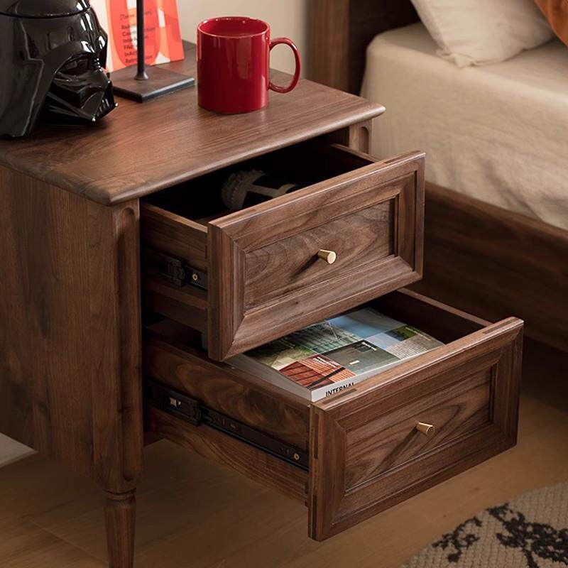 📚 北欧复古黑胡桃木床头柜全实木简约现代床边柜收纳柜抽屉储物柜
