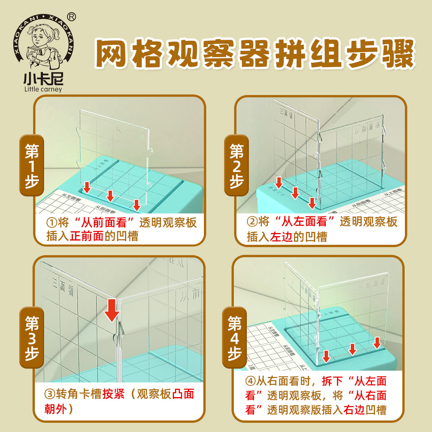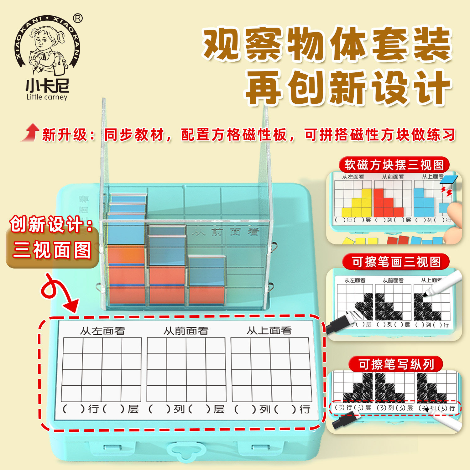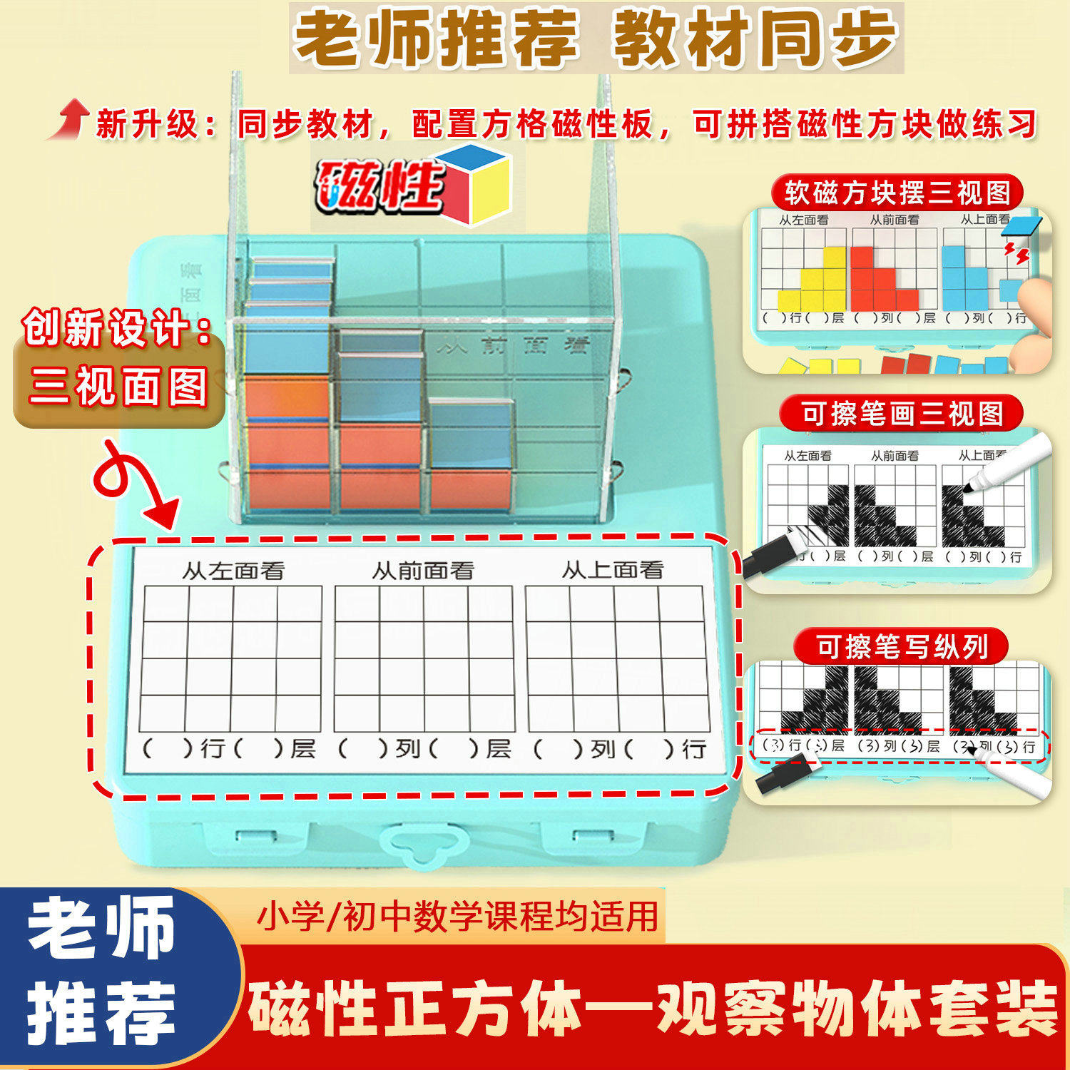 📚 正方体三视图教具观察物体方位器数学带网格套装四五年级几何模型