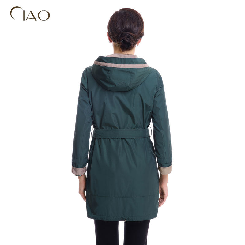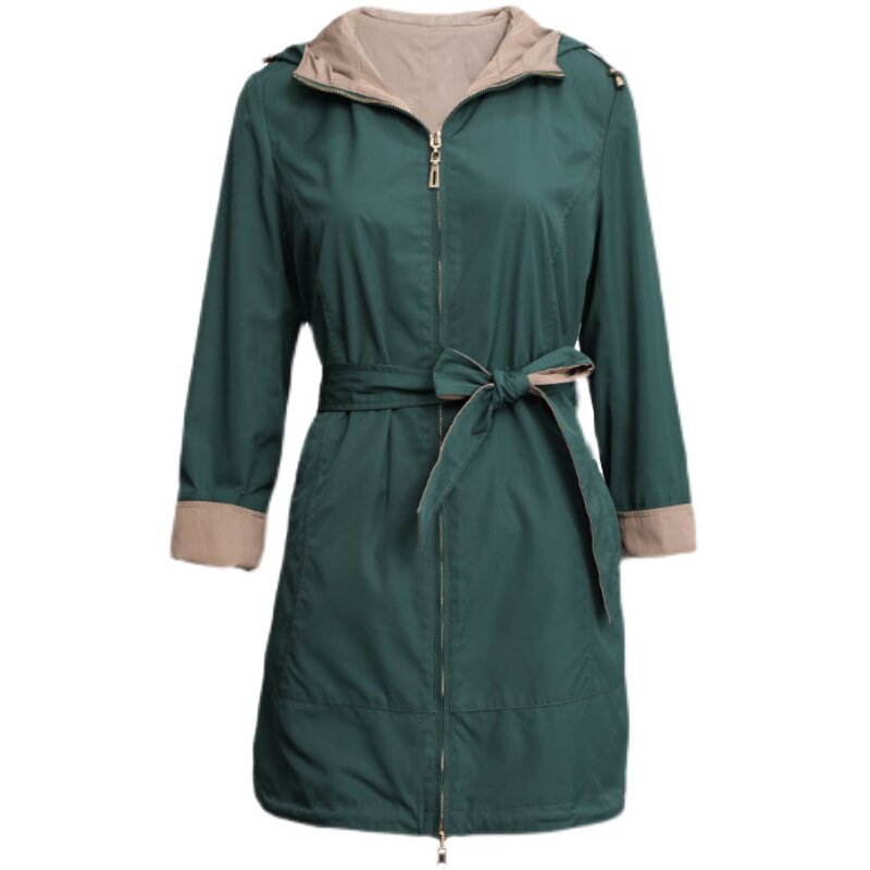 📚 千瑶特卖正品双面可穿深绿色韩版连帽风衣中长款直筒遮肉系带外套