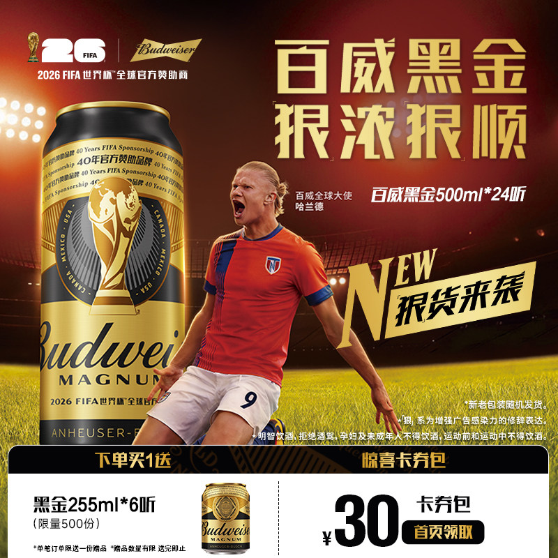 📚 百威黑金深色拉格啤酒500ml*24听12.0°P浓郁焦糖麦芽整箱批发