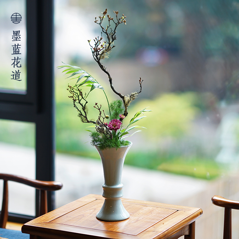 📚 池坊教学花器禅意日式中式手工陶瓷白釉花瓶花器日式花道花艺