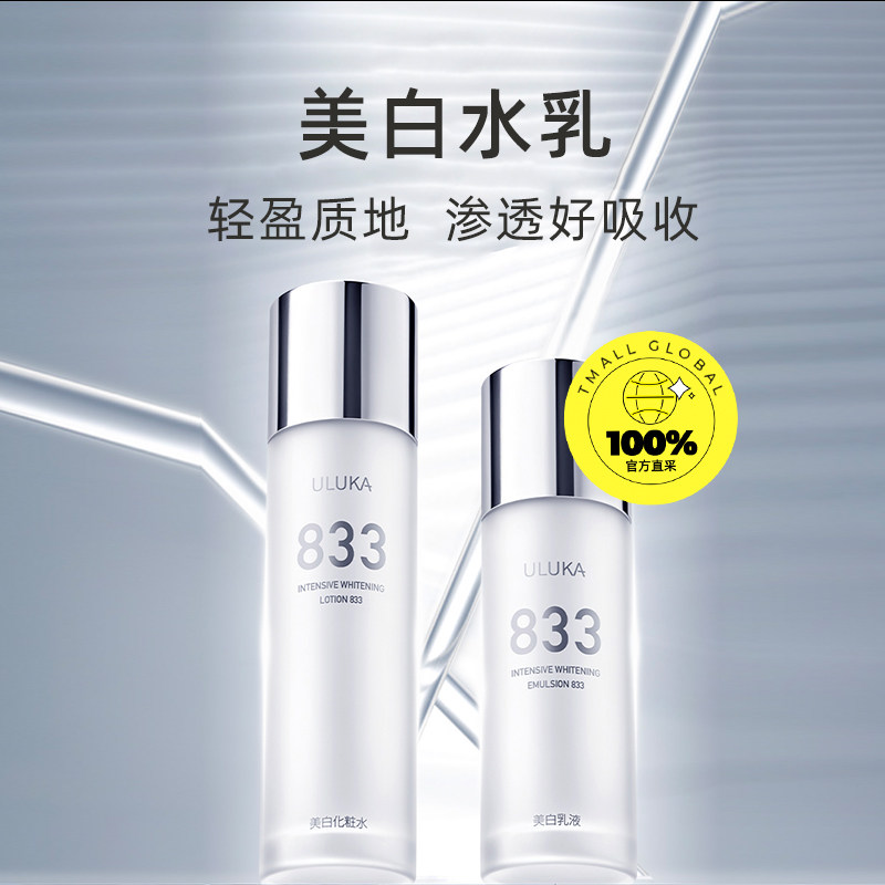 📚 【自营】uluka833美白水乳套装祛黄提亮肤色保湿护肤品改善熬夜肌