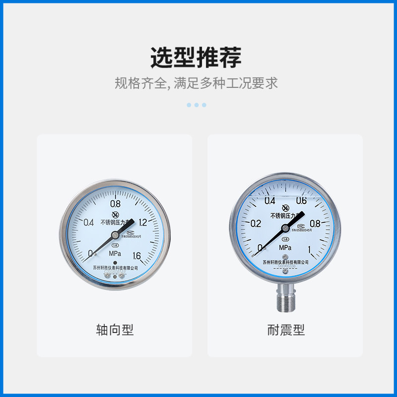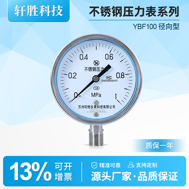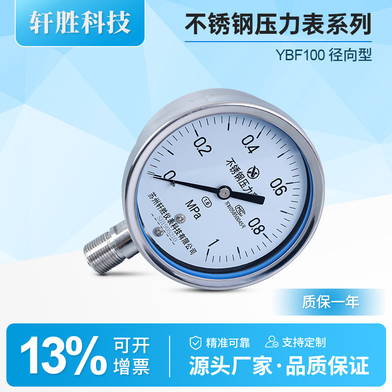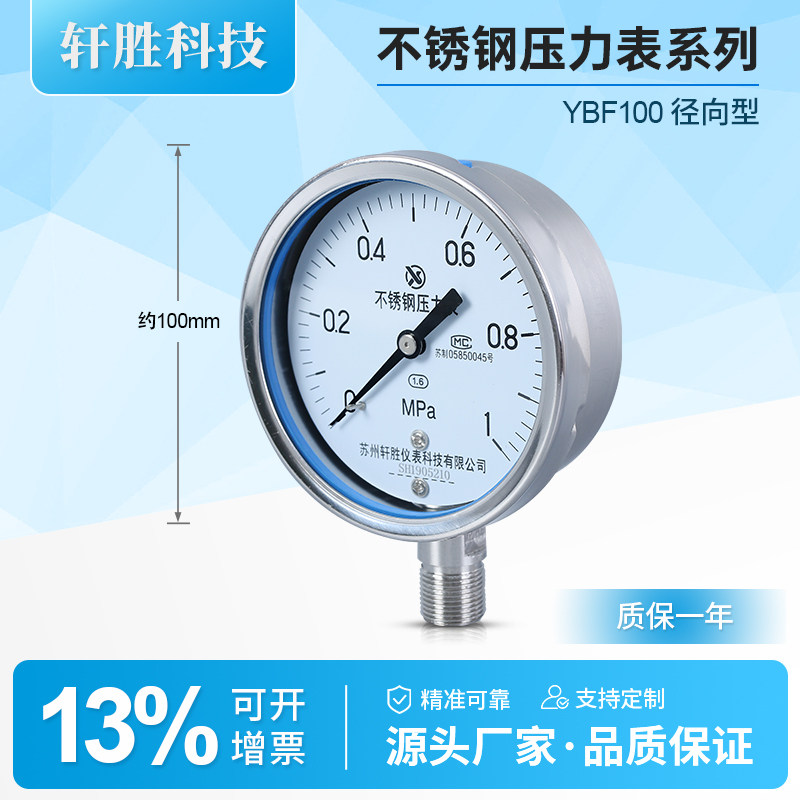 📚 Y100BF 1MPa全不锈钢压力表 防腐压力表 不锈钢耐高温蒸汽压力表