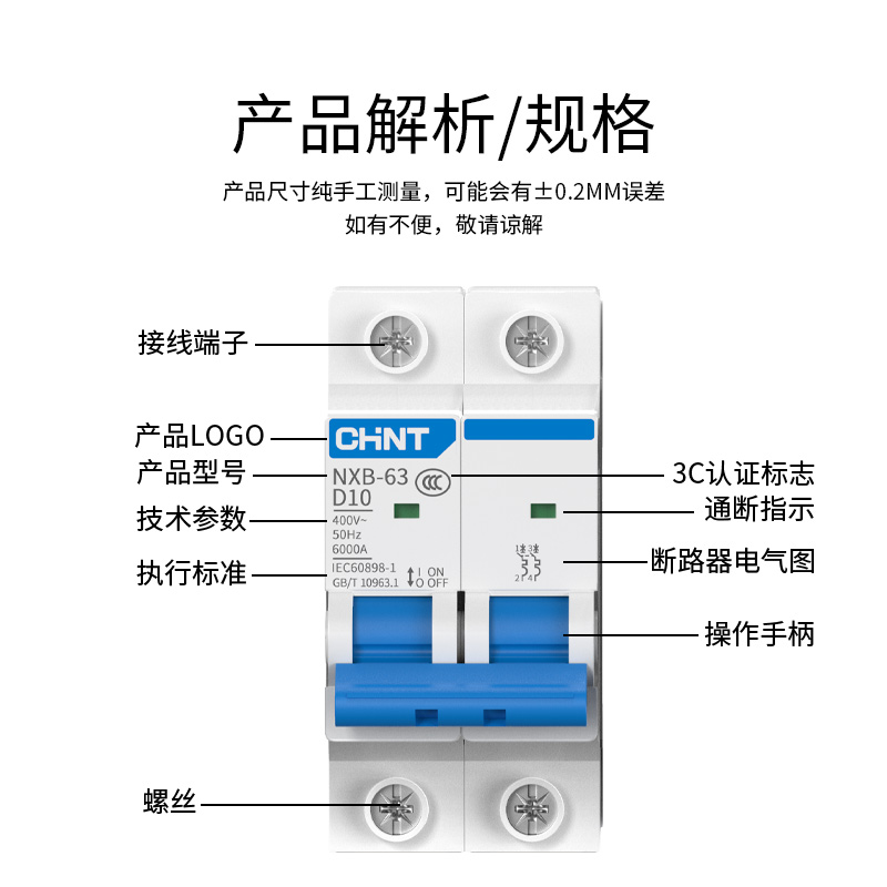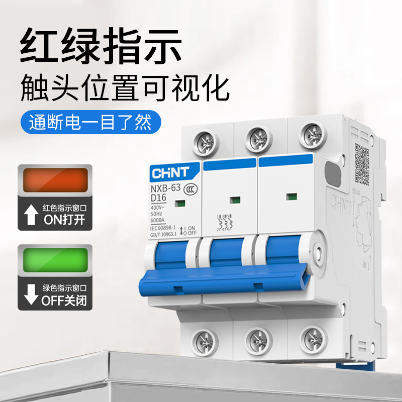 📚 正泰D型空气开关小型断路器NXB-63动力型电机保护器2p3p空开电闸
