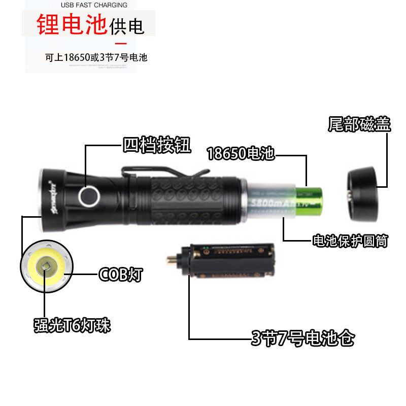 📚 工作灯工业用带磁铁led工作灯 充电宿舍男修车锂电强磁夜巡手电筒