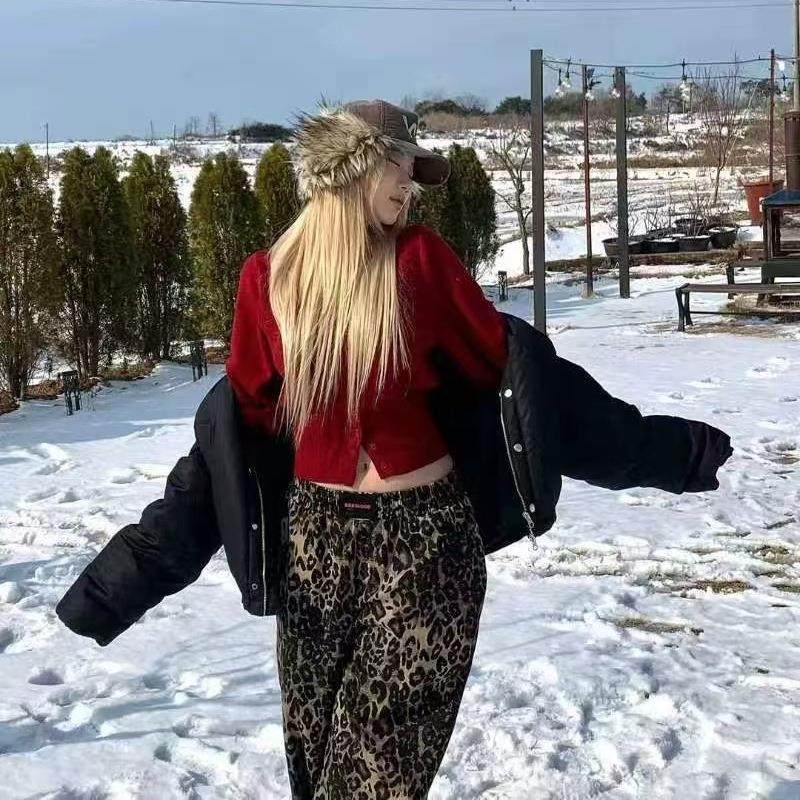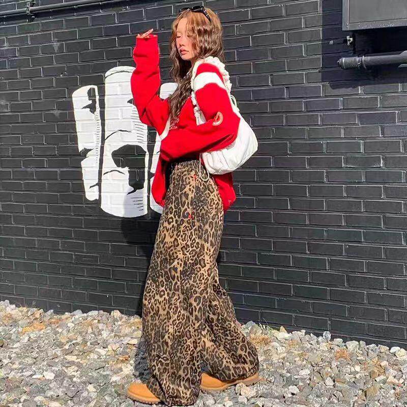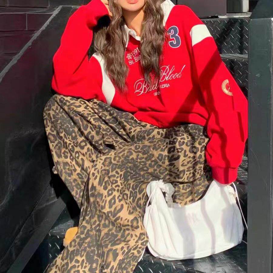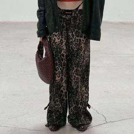 📚 【现货】GROVE EDGE美式辣妹豹纹休闲裤子女阔腿裤宽松直筒裤长裤