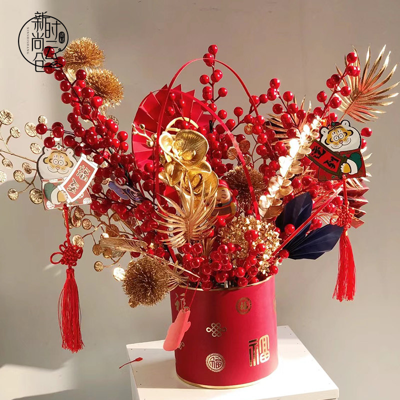 📚 新春福桶年宵花装饰带创意架构花艺造型带空气感设计蓬松感纸带