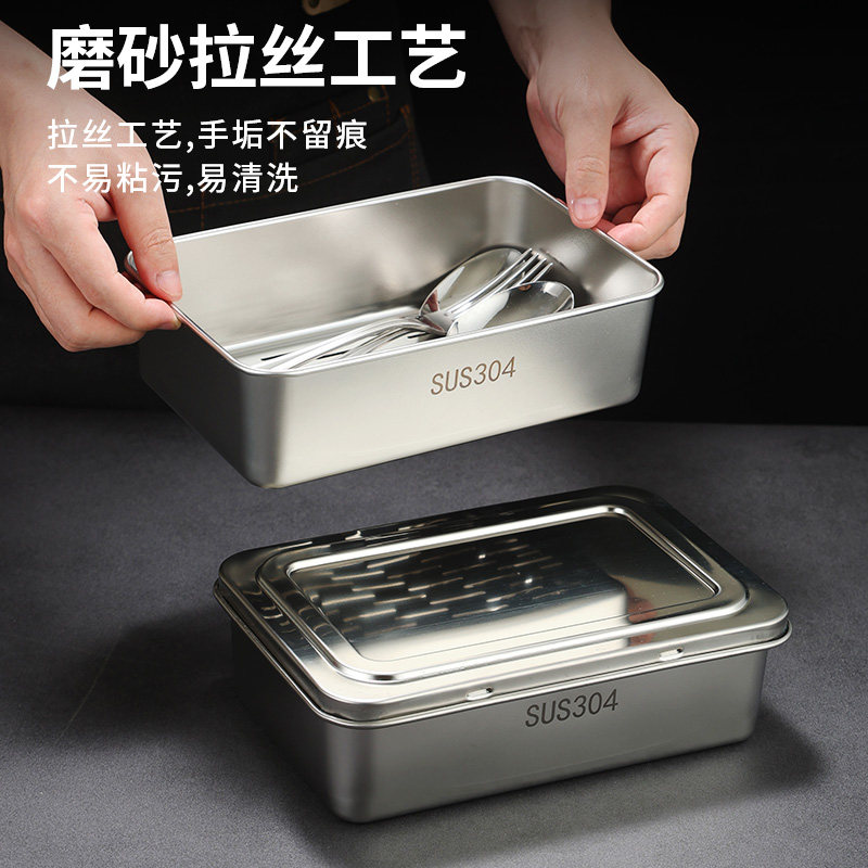 📚 304不锈钢筷子篮家用沥水篓消毒柜筷子盒笼置物架平放餐具收纳盒