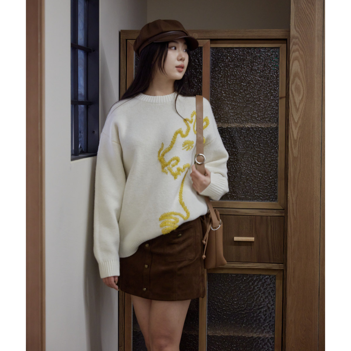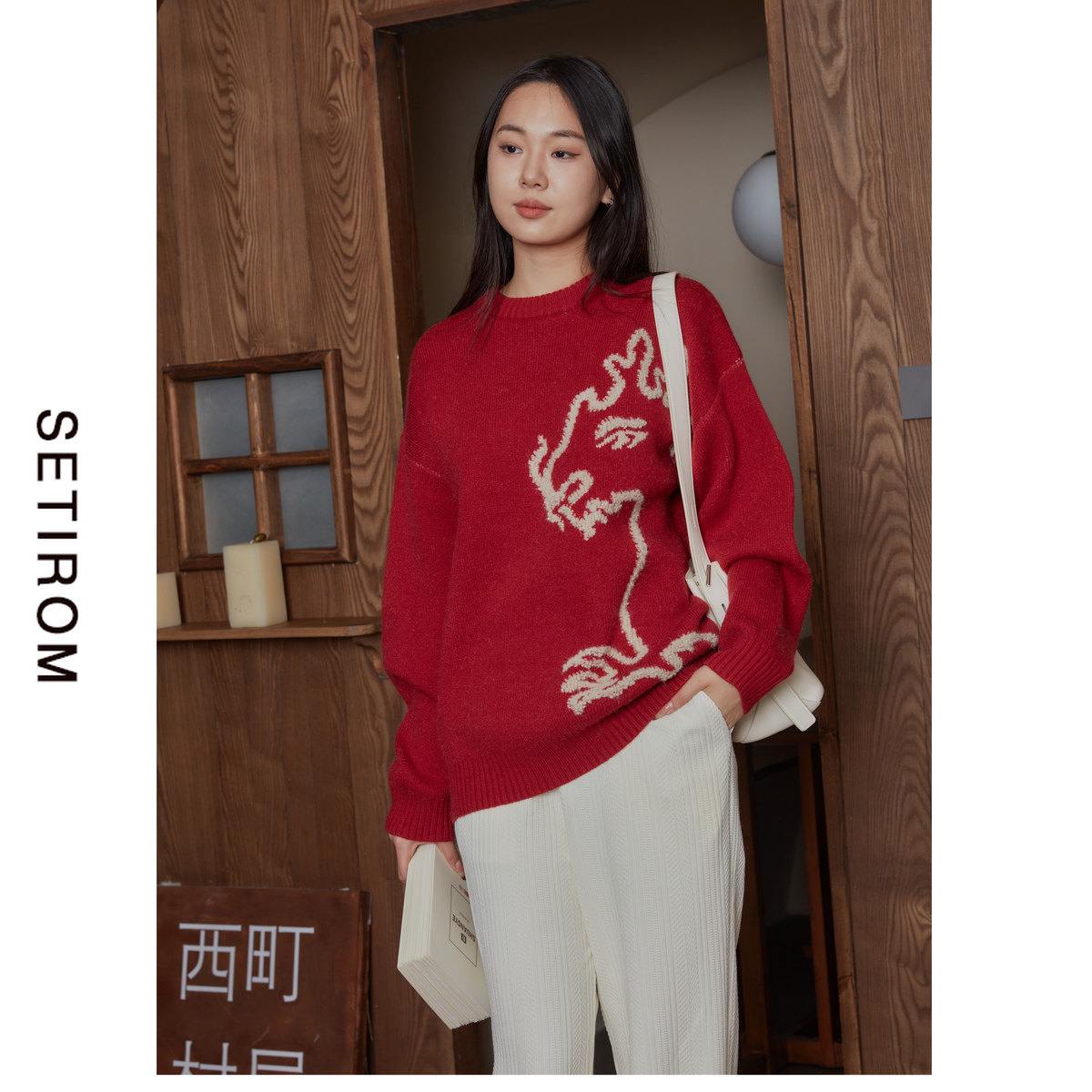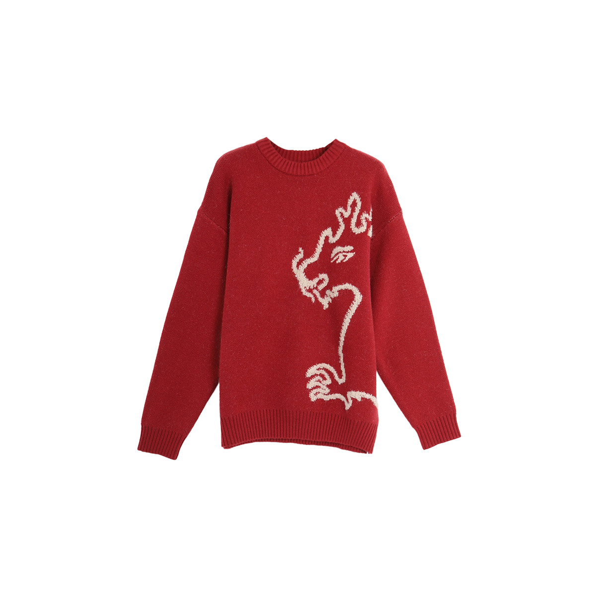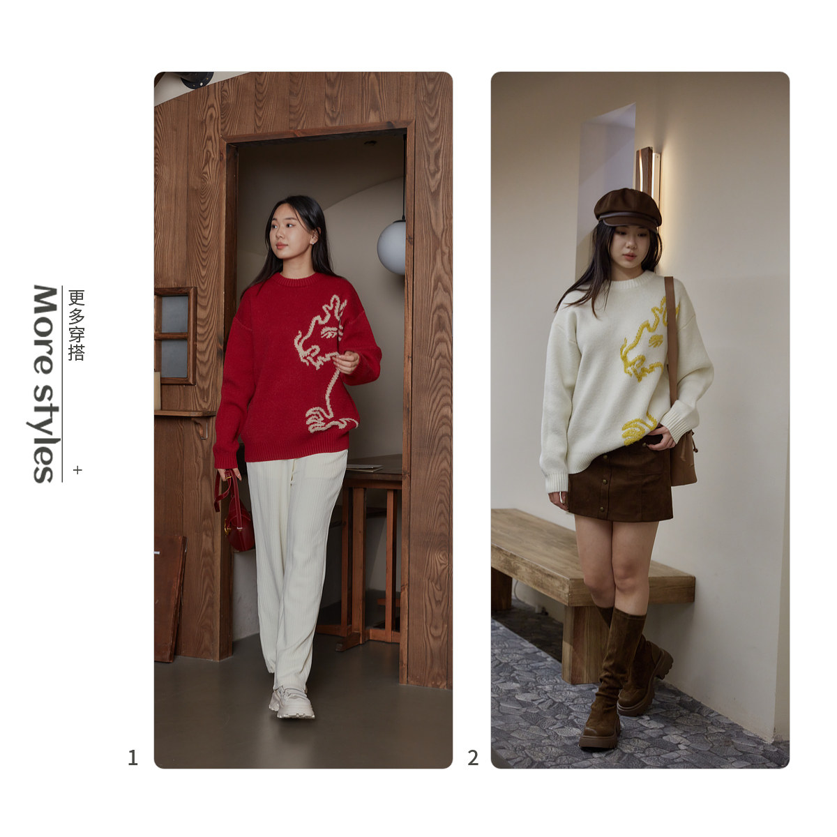 📚 西町村屋圆领针织衫女装秋冬新款休闲腾龙简笔图案毛衣HD8104520