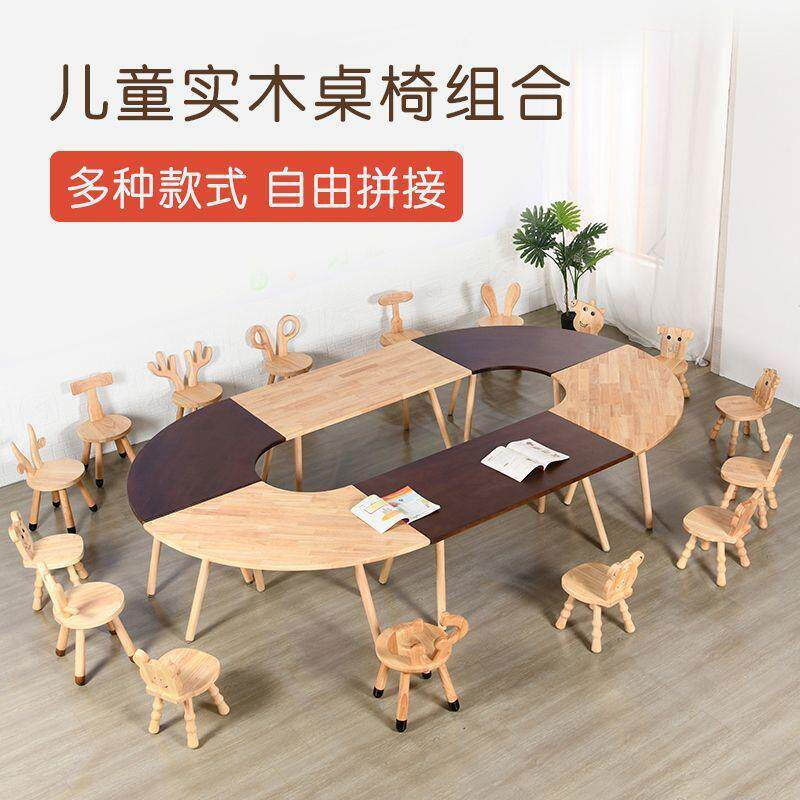 📚 幼儿园实木拼接书桌儿童桌椅套装美术培训班课桌少儿课桌桌子早教