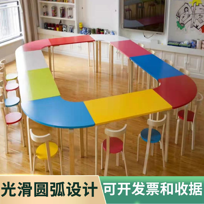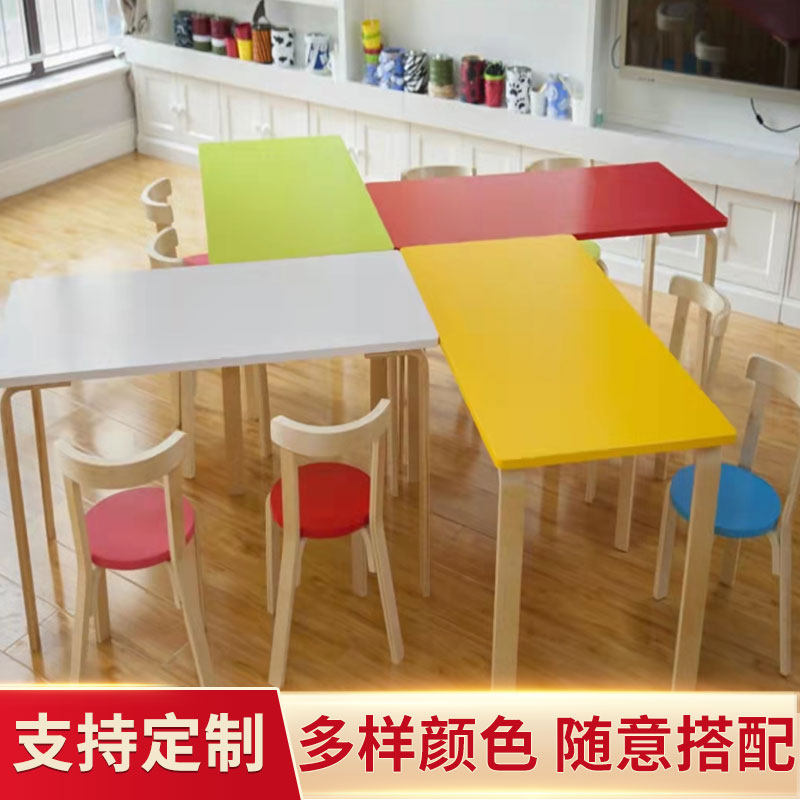 📚 实木幼儿园儿童绘画美术桌子辅导培训班绘本馆托管班小学生课桌椅