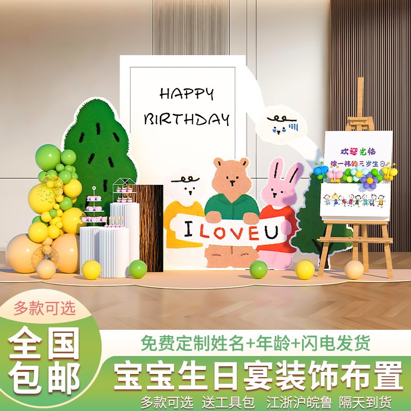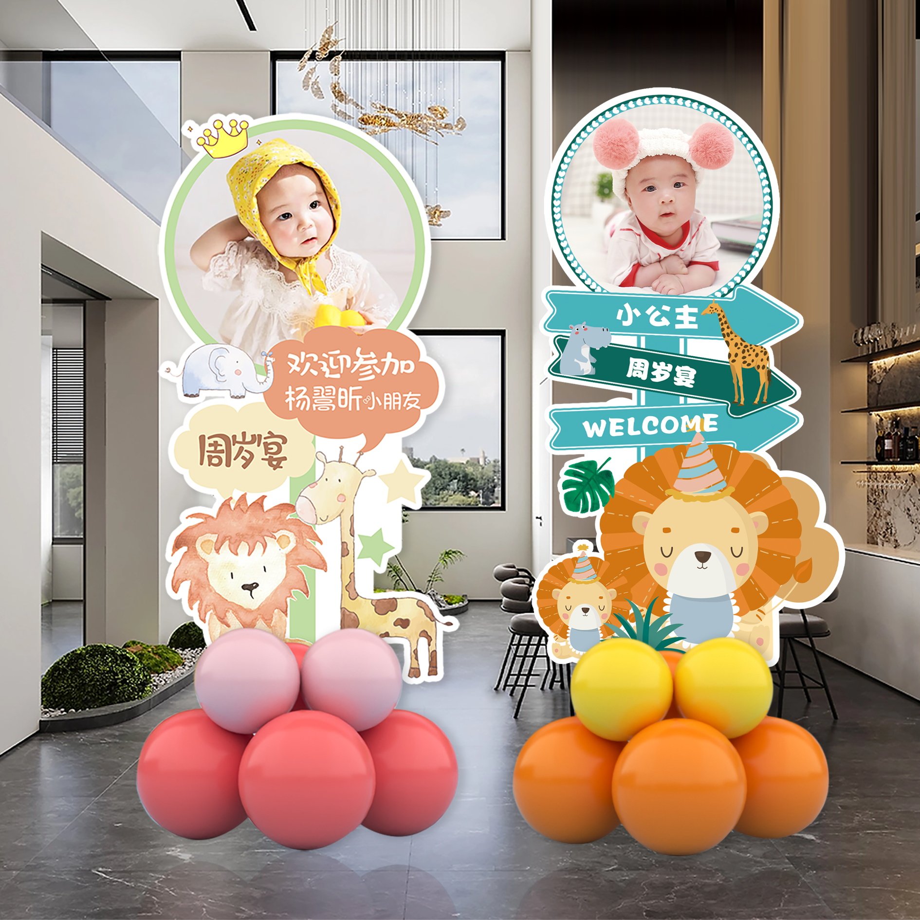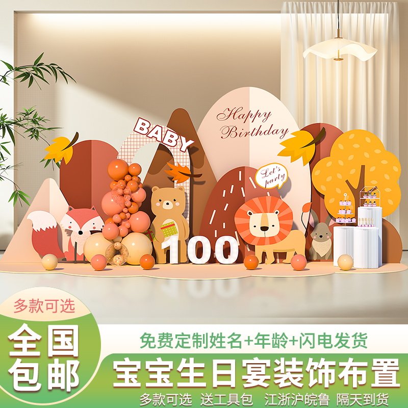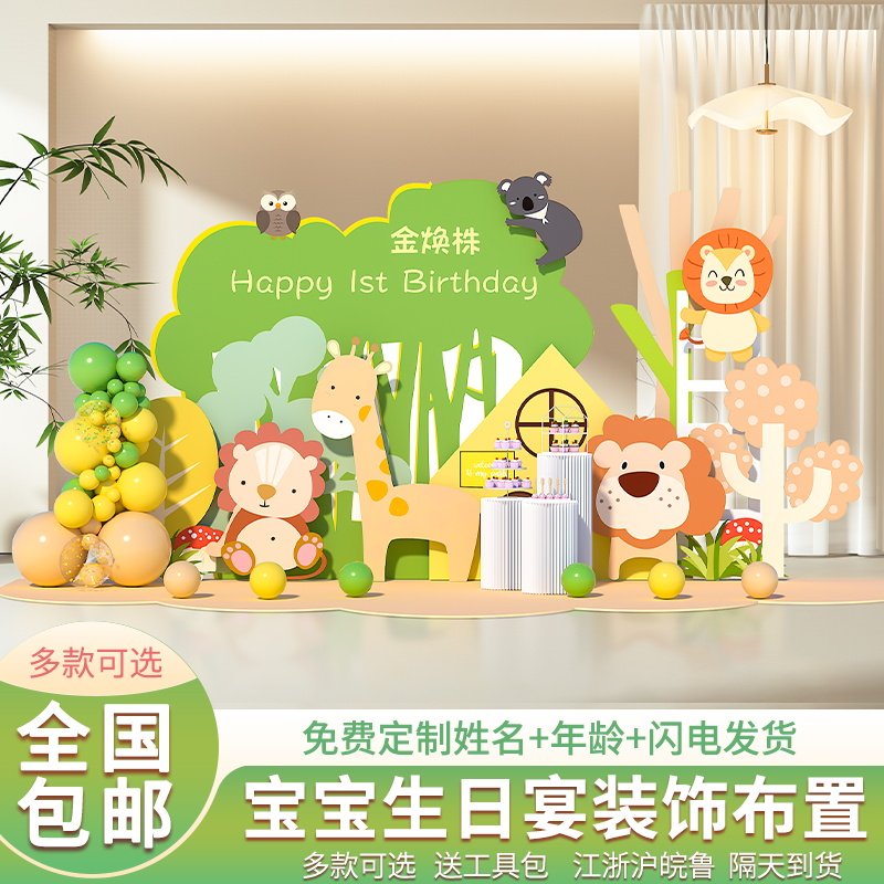 📚 丛林动物卡通主题森系生日背景墙满月周岁抓周气球场景布置装饰
