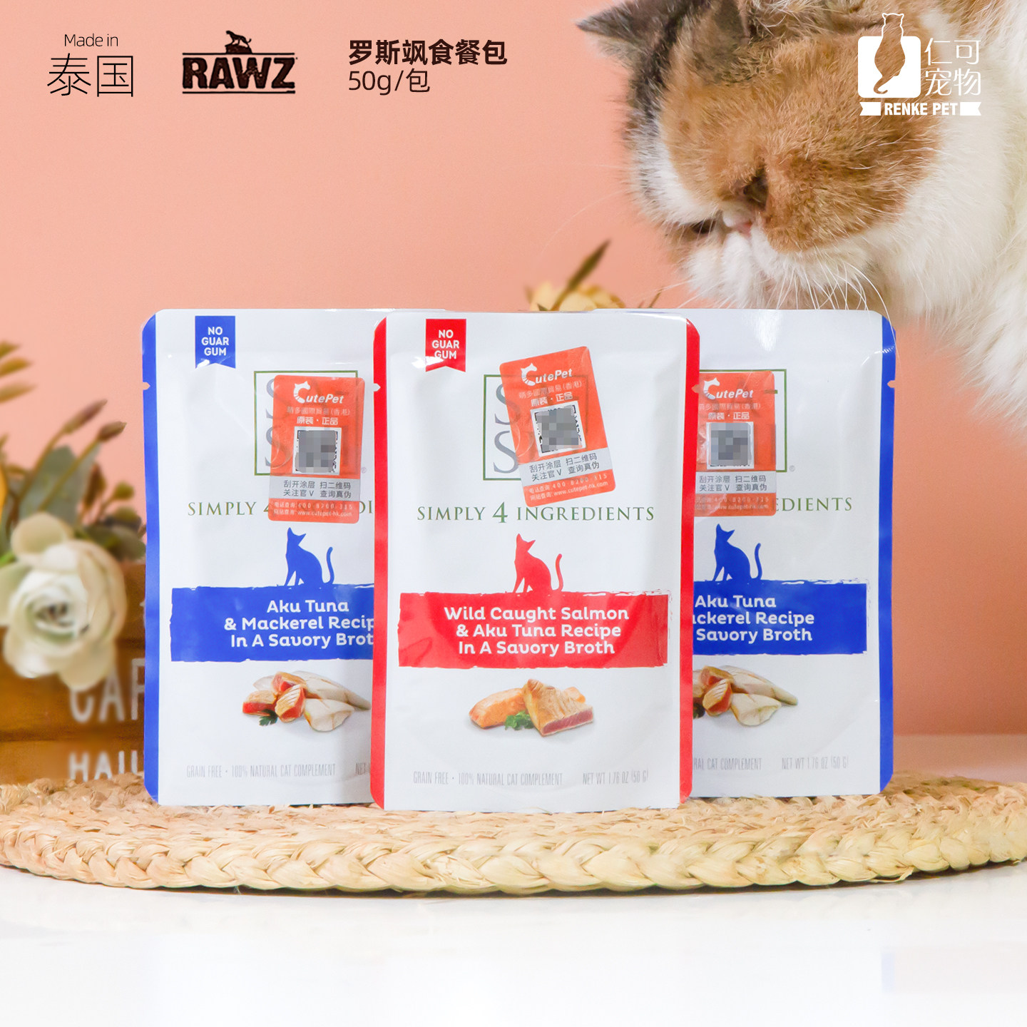 📚 仁可宠物 泰产rawz罗斯飒食猫零食补水餐包50g成幼猫鱼肉湿粮软包