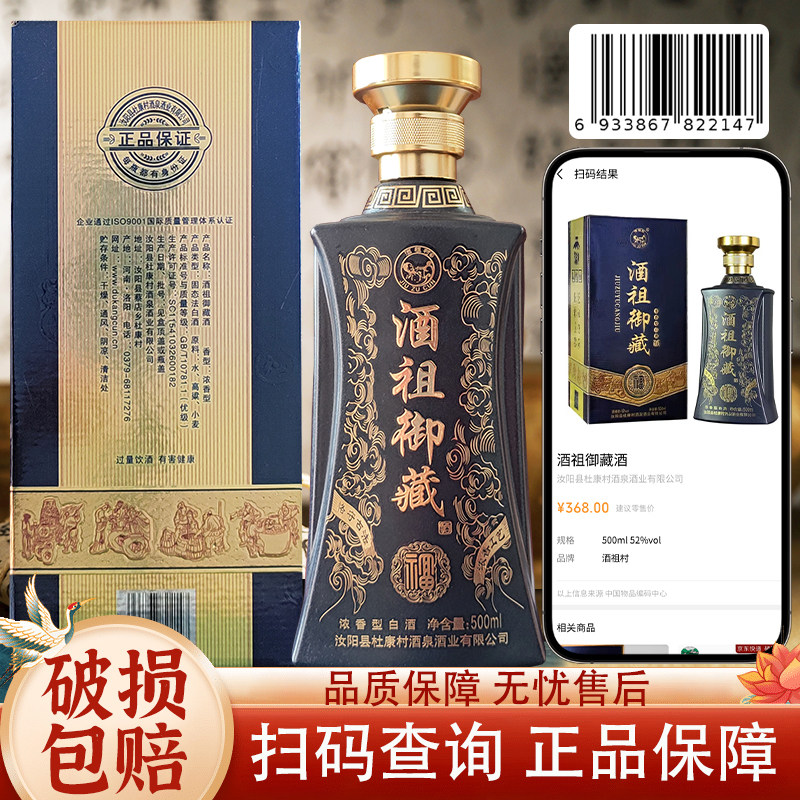 📚 汝阳杜康村酒祖御藏52度浓香型白酒纯粮食原浆年份老酒500ml礼盒