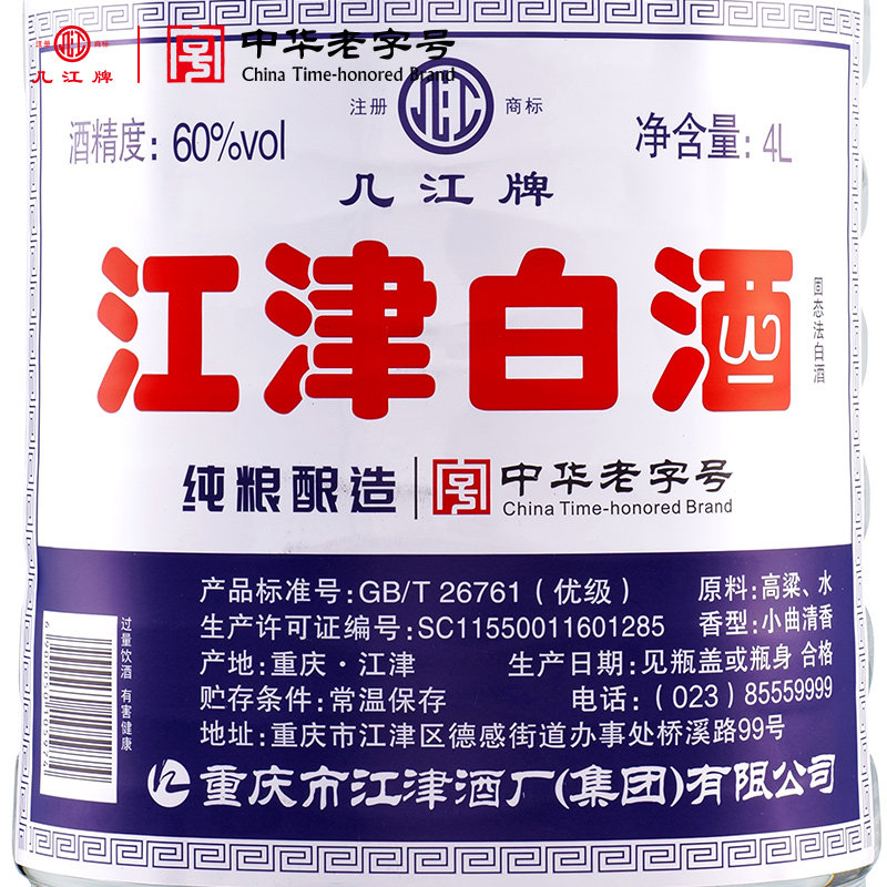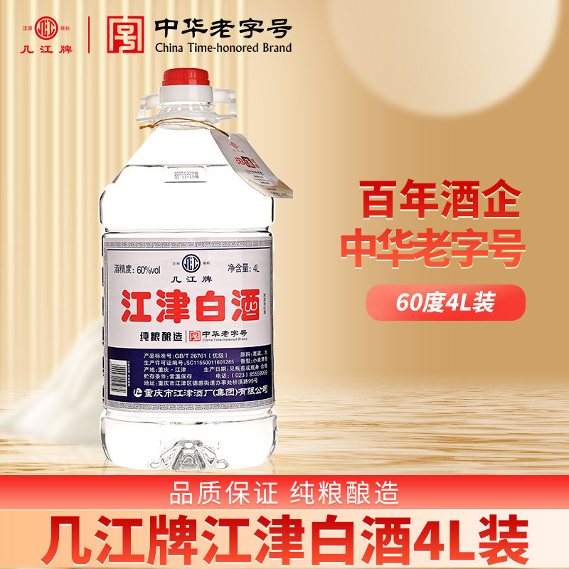 📚 中华老字号几江牌60度4L纯粮酿造江津白酒泡酒专用整箱/单桶白酒
