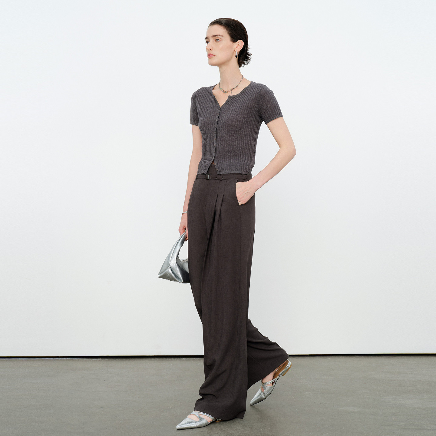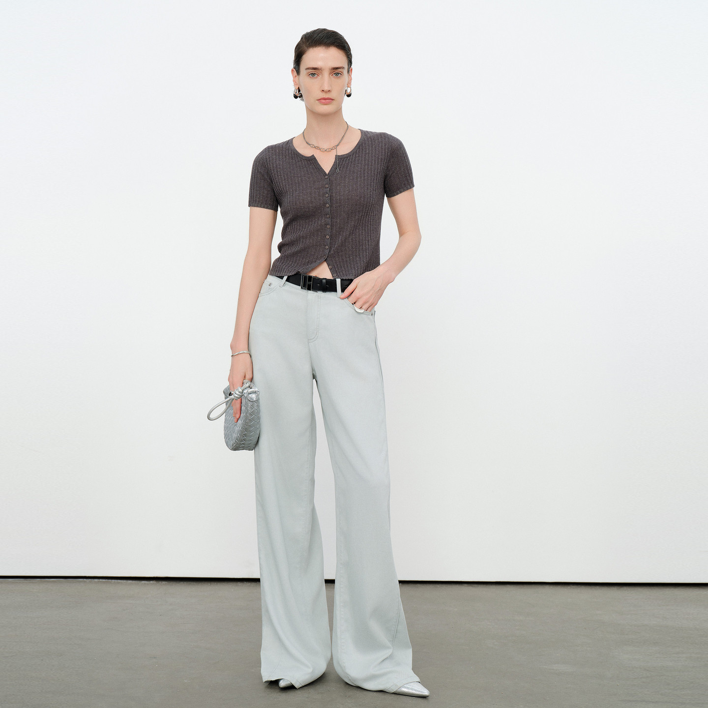 📚 婉甸2026夏季新品麻花灰短袖单排一字扣毛织针织开衫1252W18RS4