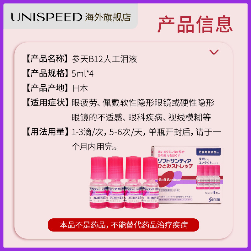📚 日本进口参天B12人工泪液滴眼液隐形5ml*4瓶疲劳维生素眼药水
