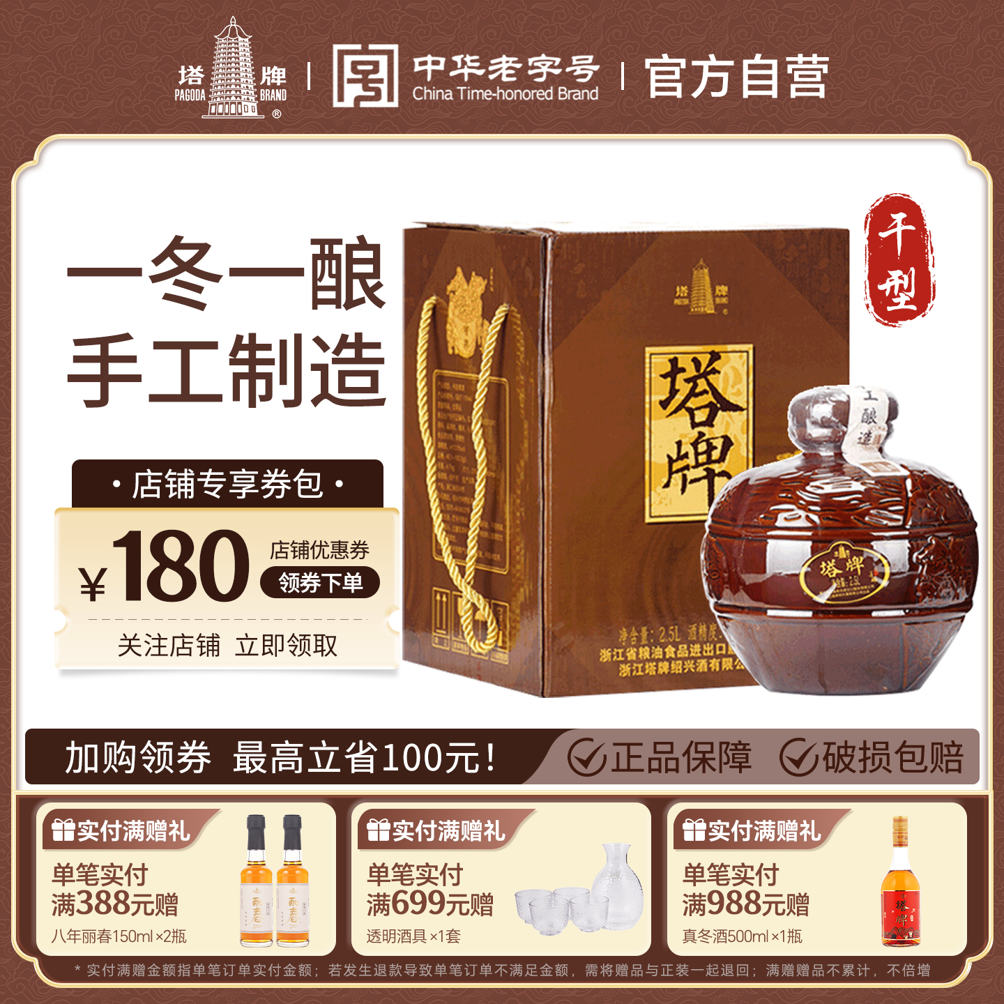 📚 塔牌黄酒半甜型善酿酒2.5L坛装酒手工酒糯米花雕酒送礼盒绍兴黄酒