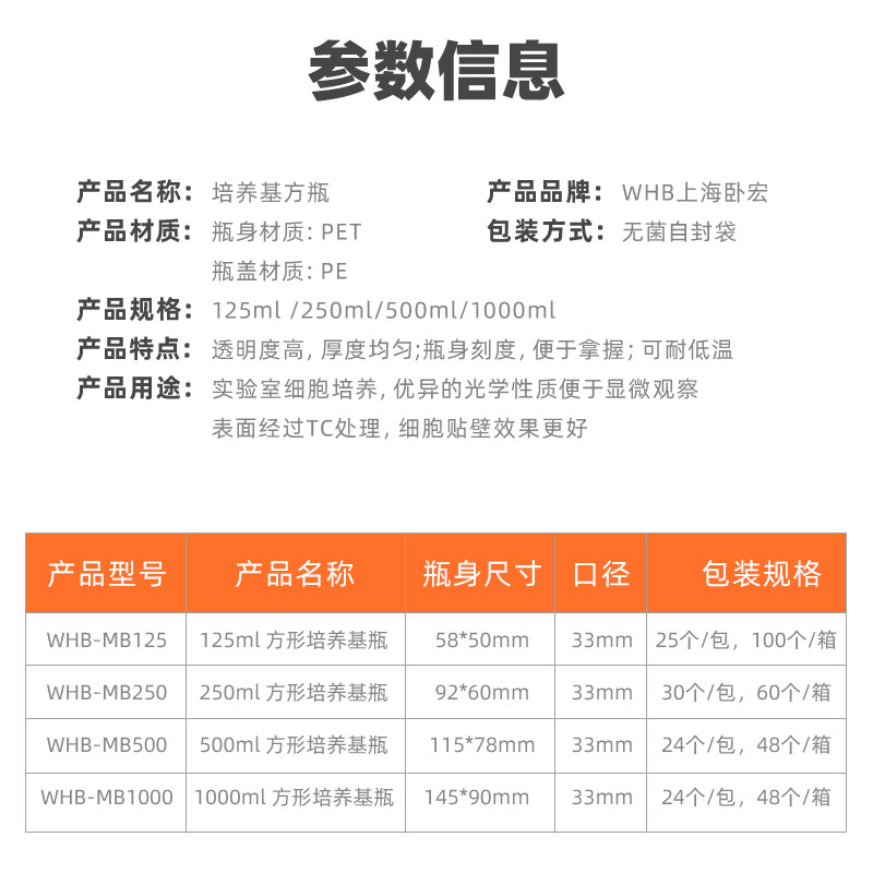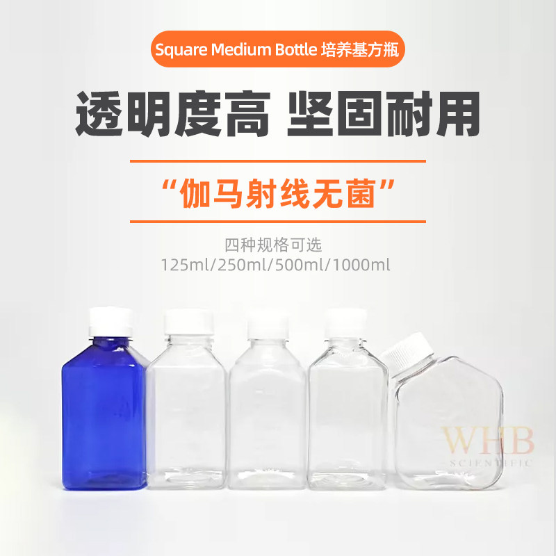 📚 WHB 125ml250ml500ml1000ml血清瓶 方形瓶 方形培养基瓶 实验室样品分装瓶 WHB-MB125_MB250_MB500_MB1000