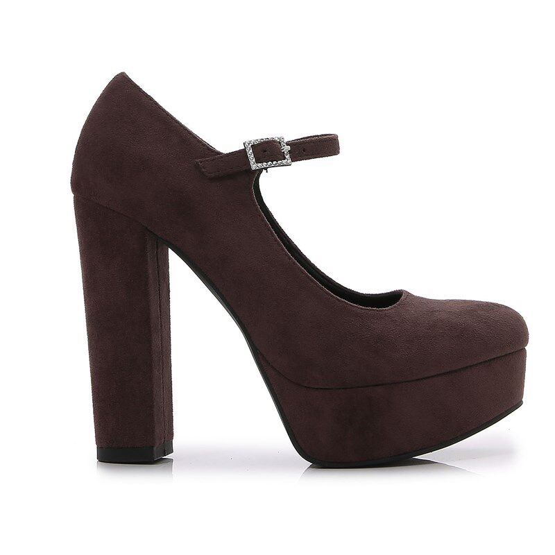 📚 Round head thick heeled water table suede high heeled single