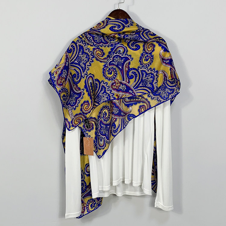 📚 外贸订单 真丝乔其缎手工卷边印花大方巾 桑蚕丝大牌风格丝巾围巾