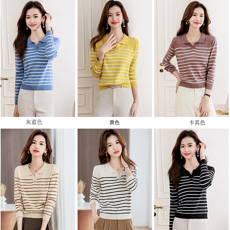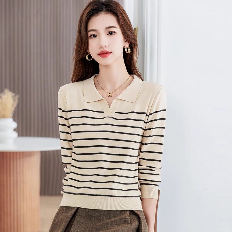 89¥ CZ028 OsNJU8Iz3Gz¥ https://m.tb.cn/h.7sXe9nr polo领黑白条纹长袖针织衫女装2025新款秋冬小个子短款毛衣打底衫 --------------------- 【原售价】159元 【现售价】68元。