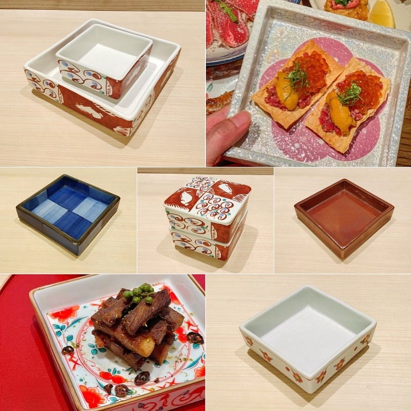 📚 善渊 陶瓷四方正方盒盘寿司刺身烤肉盘蛋羹甜点拉面钵碗创意餐具