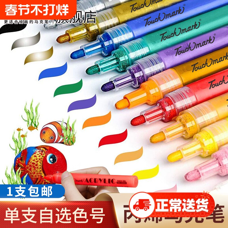 📚 丙烯马克笔touchmark单支拍立得丙烯笔白色颜料笔不掉色黑色涂鸦笔金色油漆笔学生专用0.7硬头笔红色粉色防水
