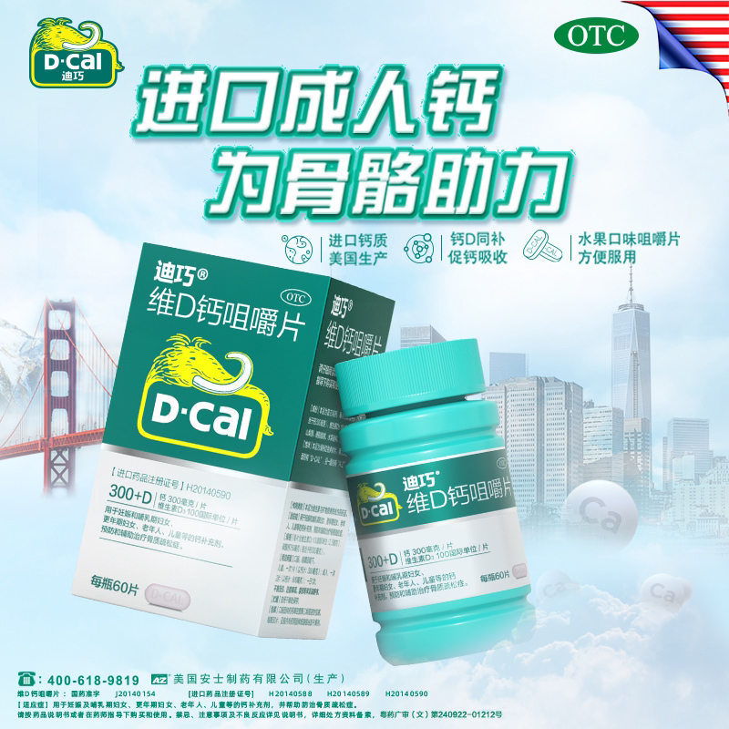 📚 迪巧钙片维D钙咀嚼片60片骨质疏松妊娠哺乳期妇女成人钙迪巧钙片